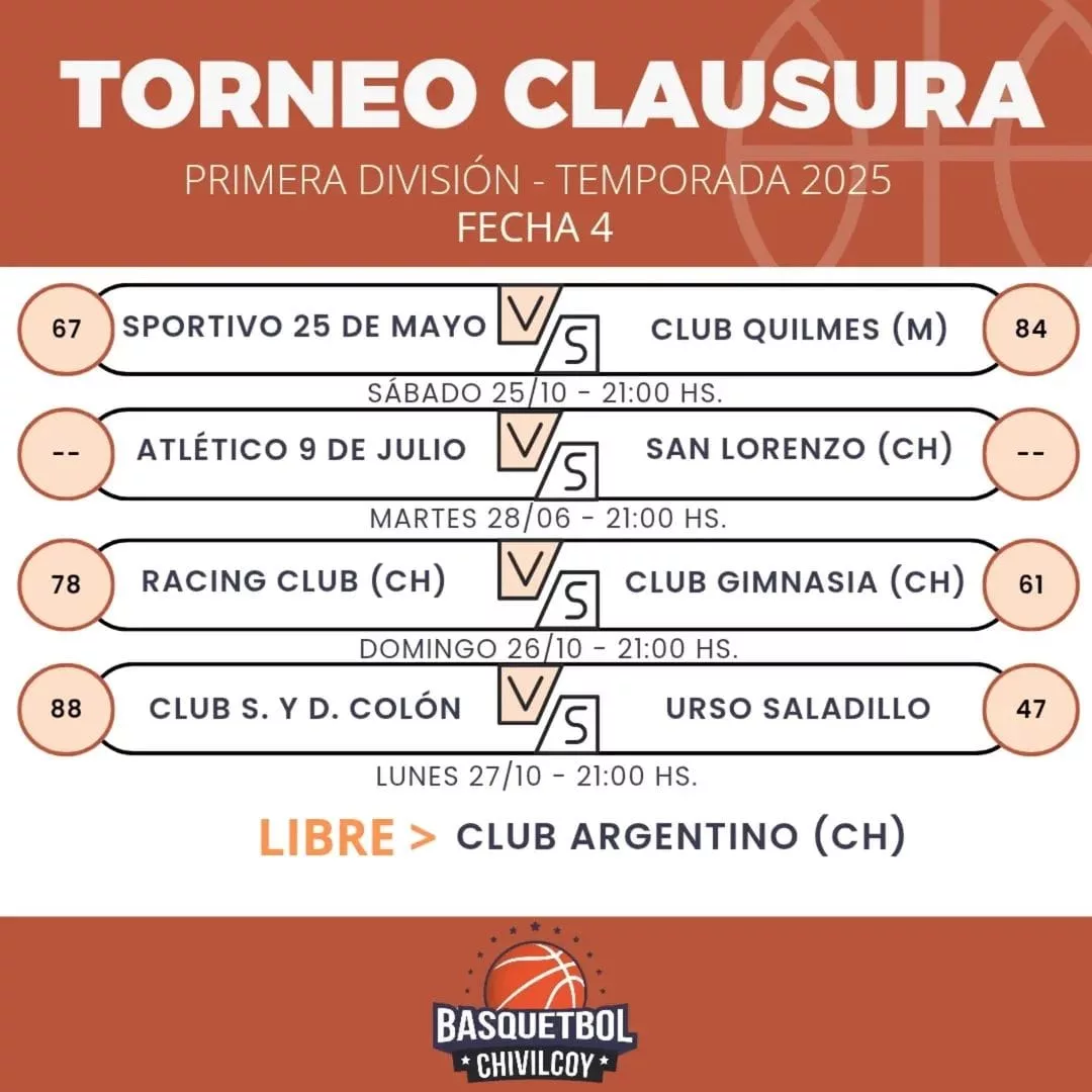 Por la cuarta fecha del Torneo de Primera División, Colon de Chivilcoy se impuso de local ante Jacobo Urso por 88 a 47. Poca resistencia pudo hacer el equipo juvenil de Saladillo ante uno de los mejores conjuntos del certamen (el otro es Racing). Lo mejor de los saladillenses pasó por Guido Mazza (13) y R. Noviello (10).