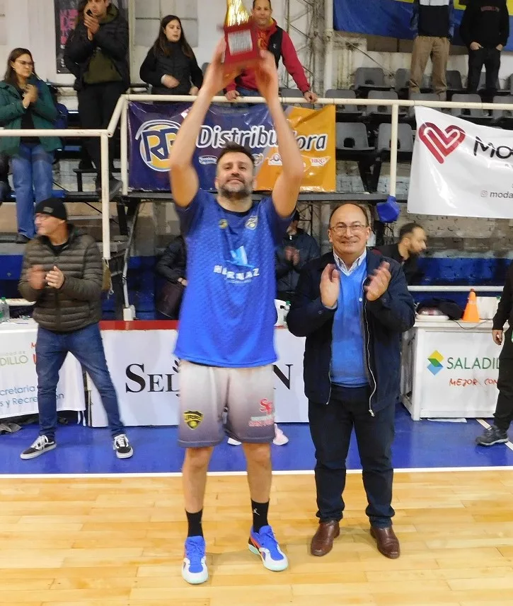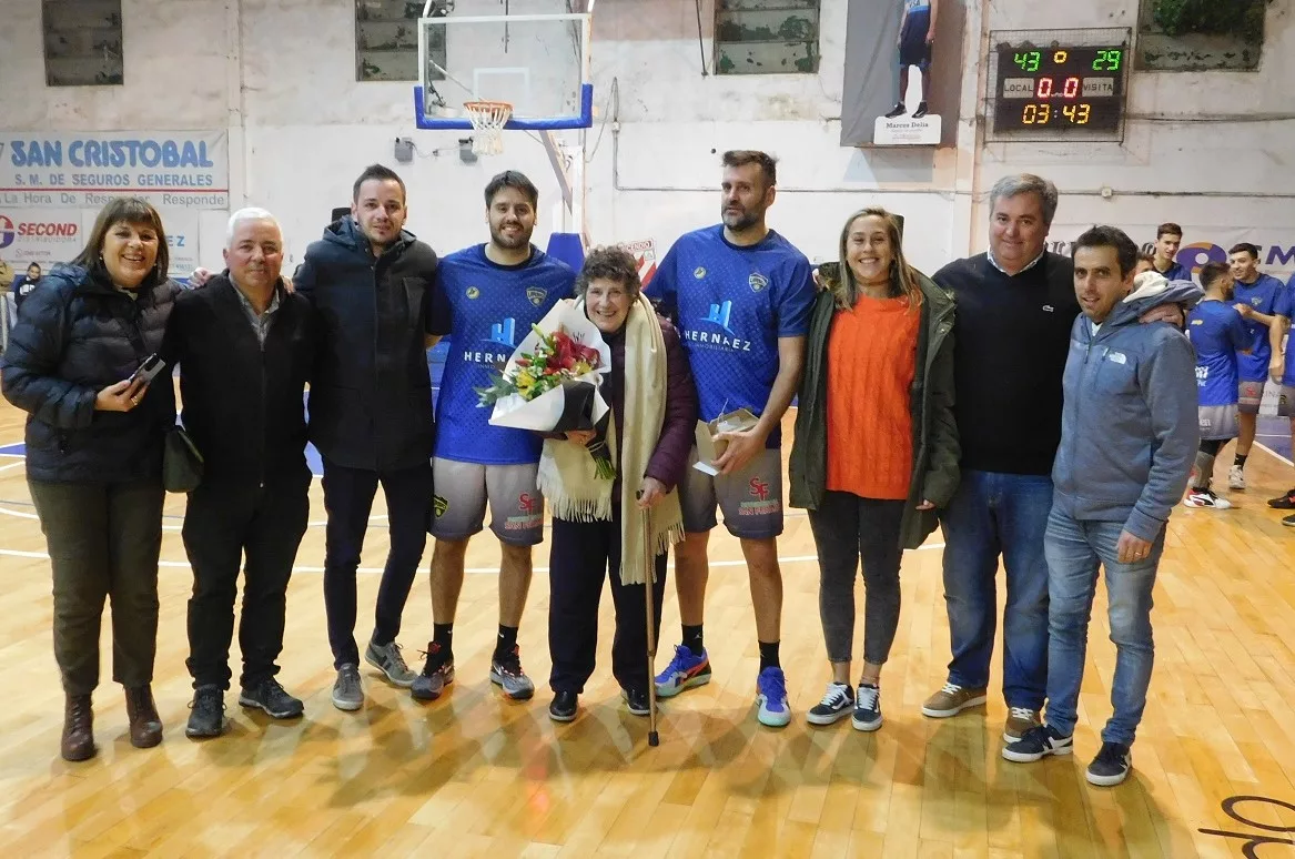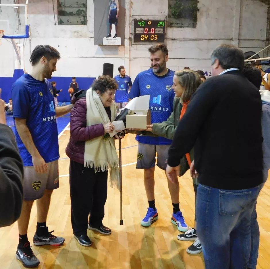 En el entretiempo se le realizó un homenaje, muy emotivo, a Marcos Delía (padre), por su apoyo desinteresado al deporte y en este caso al básquet.