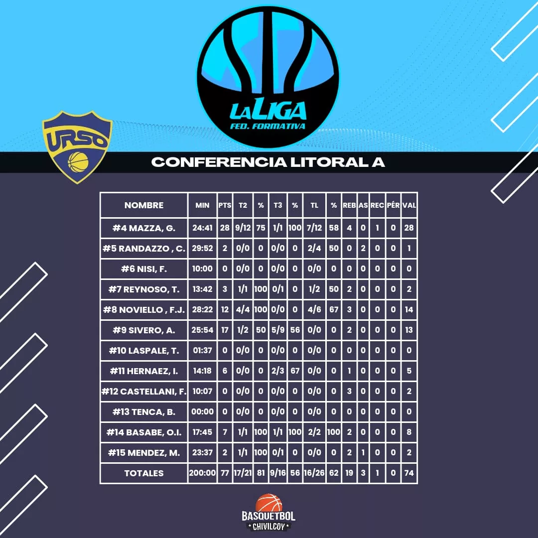 Por unos de los cuadrangulares del Torneo Federal Sub17 de básquet que se está desarrollando en San Nicolás, Jacobo Urso se impuso este sábado a Belgrano de San Nicolás por 77 a 59. En el otro partido, Gimnasia de Rosario le ganó a Temperley 80 a 59.