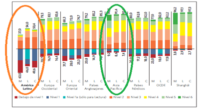 Pero hablando de Educación, de lo cual conozco un poco sin ser un experto, observemos como es la educación en Latinoamérica comparada con el resto del mundo: