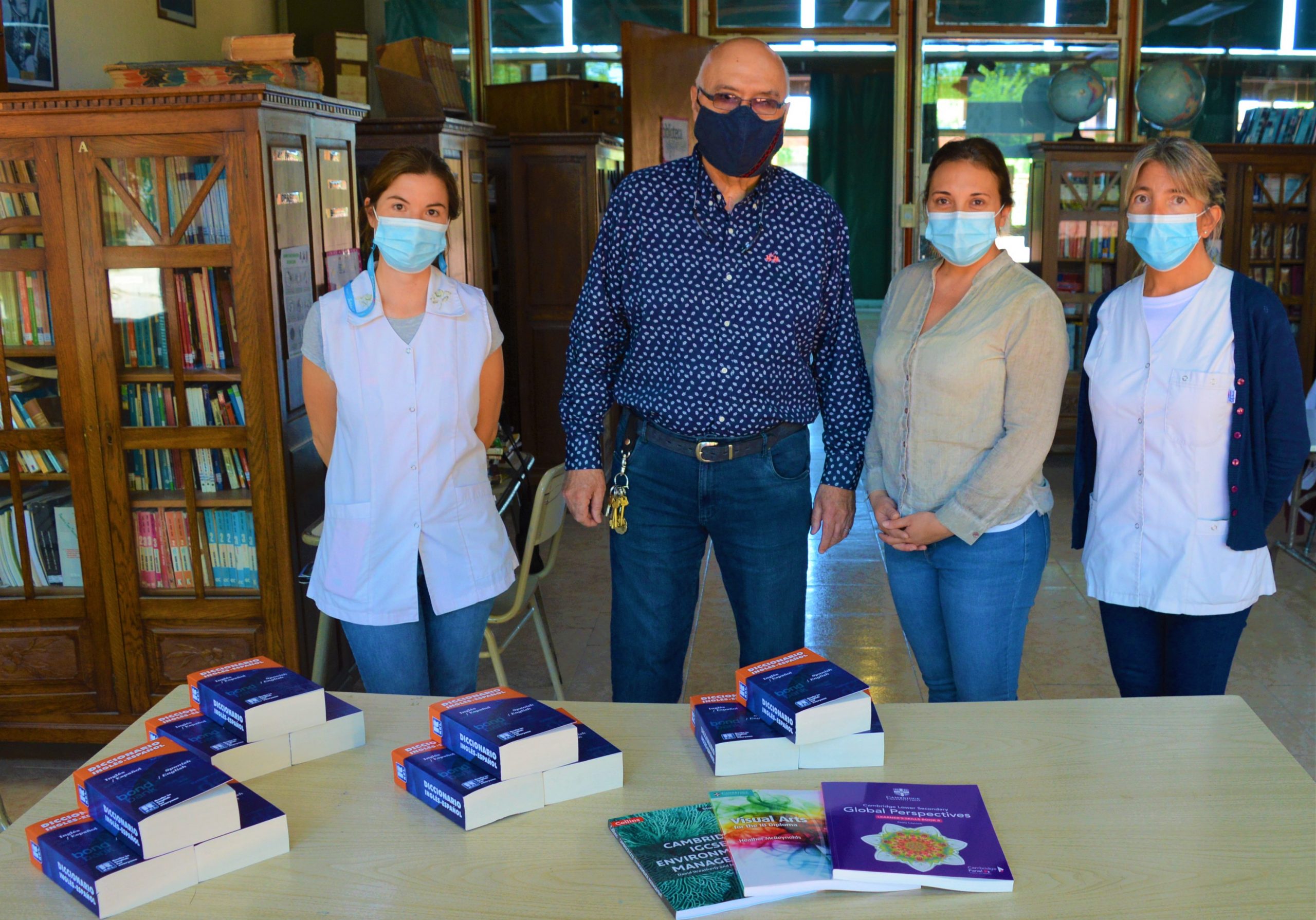 “Durante la visita hice entrega de diccionarios y bibliografía en idioma inglés en reconocimiento a la trayectoria de la profesora “Pitty” Thompson quien fuera docente del establecimiento durante cuatro decadas” Carlos Antonio Gorosito.