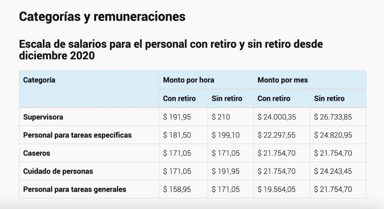 De esta manera, cuando se paguen los salarios de diciembre, el personal para tareas como limpieza, lavado, planchado, mantenimiento, elaboración y cocción de comidas y toda otra tarea típica del hogar, cobrará:
