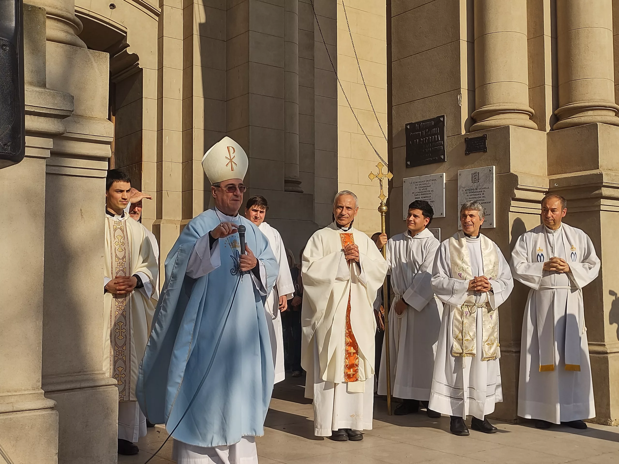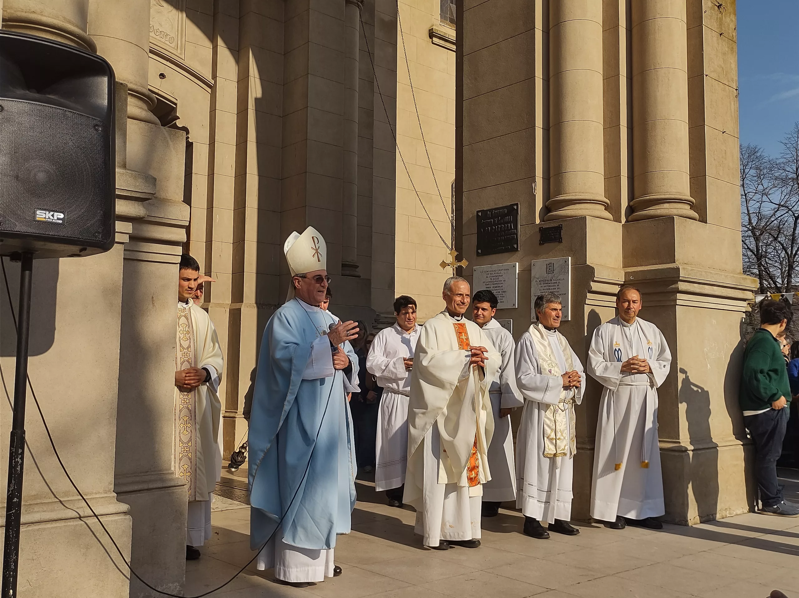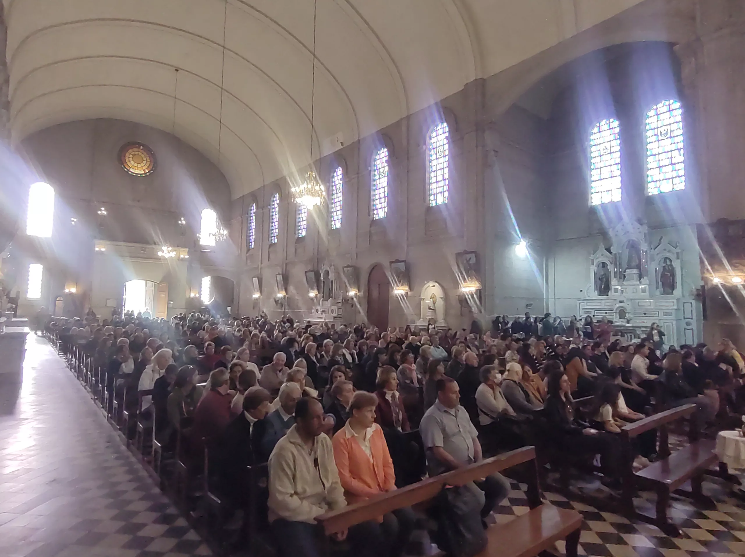 Luego de la procesión por las calles de la ciudad hubo palabras en el atrio parroquial, para posteriormente participar de la Misa en el interior del templo.
