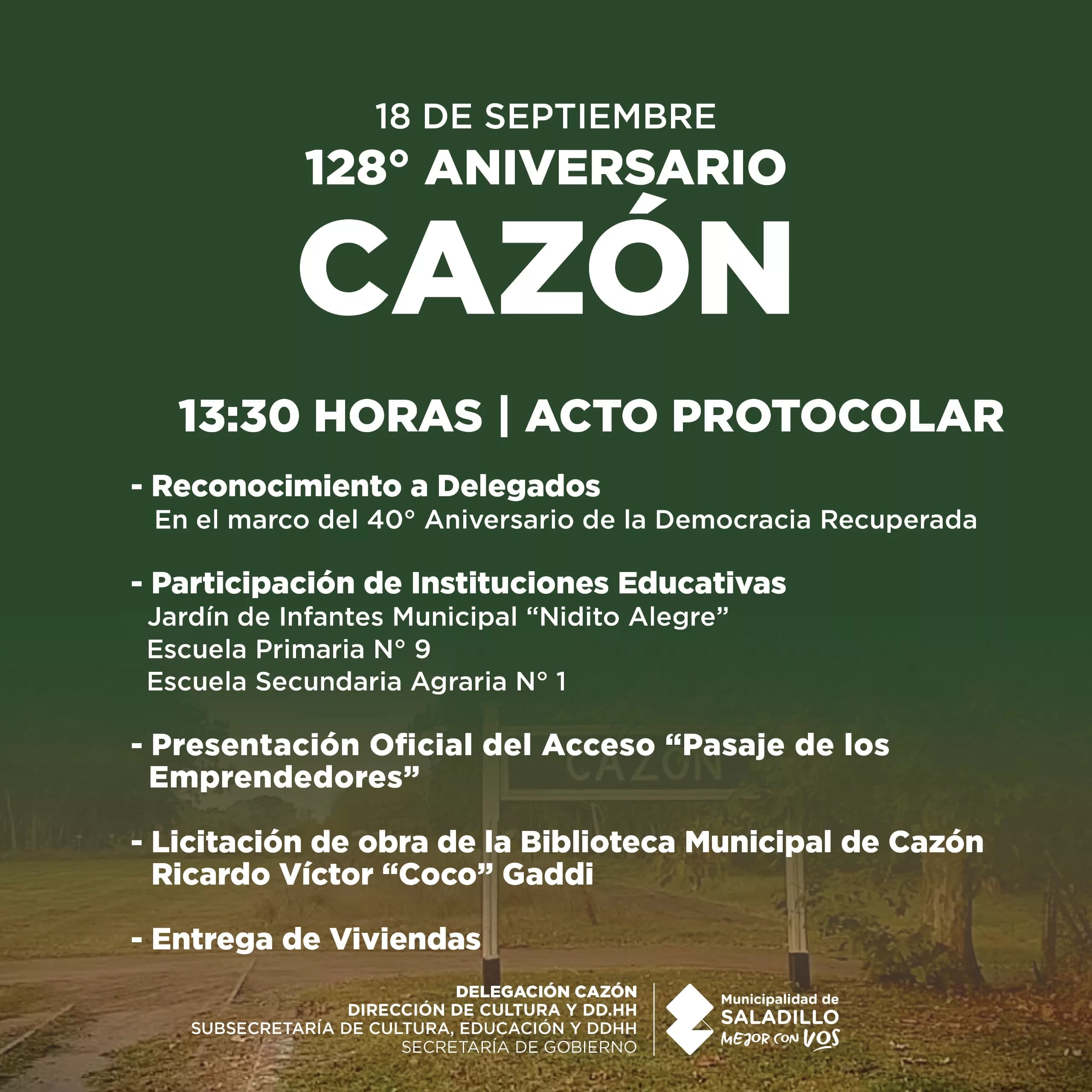 Información General 18 de septiembre | 128 aniversario de Cazón septiembre 18, 2024 - Publicidad - 18 DE SEPTIEMBRE | 128° ANIVERSARIO DE CAZÓN