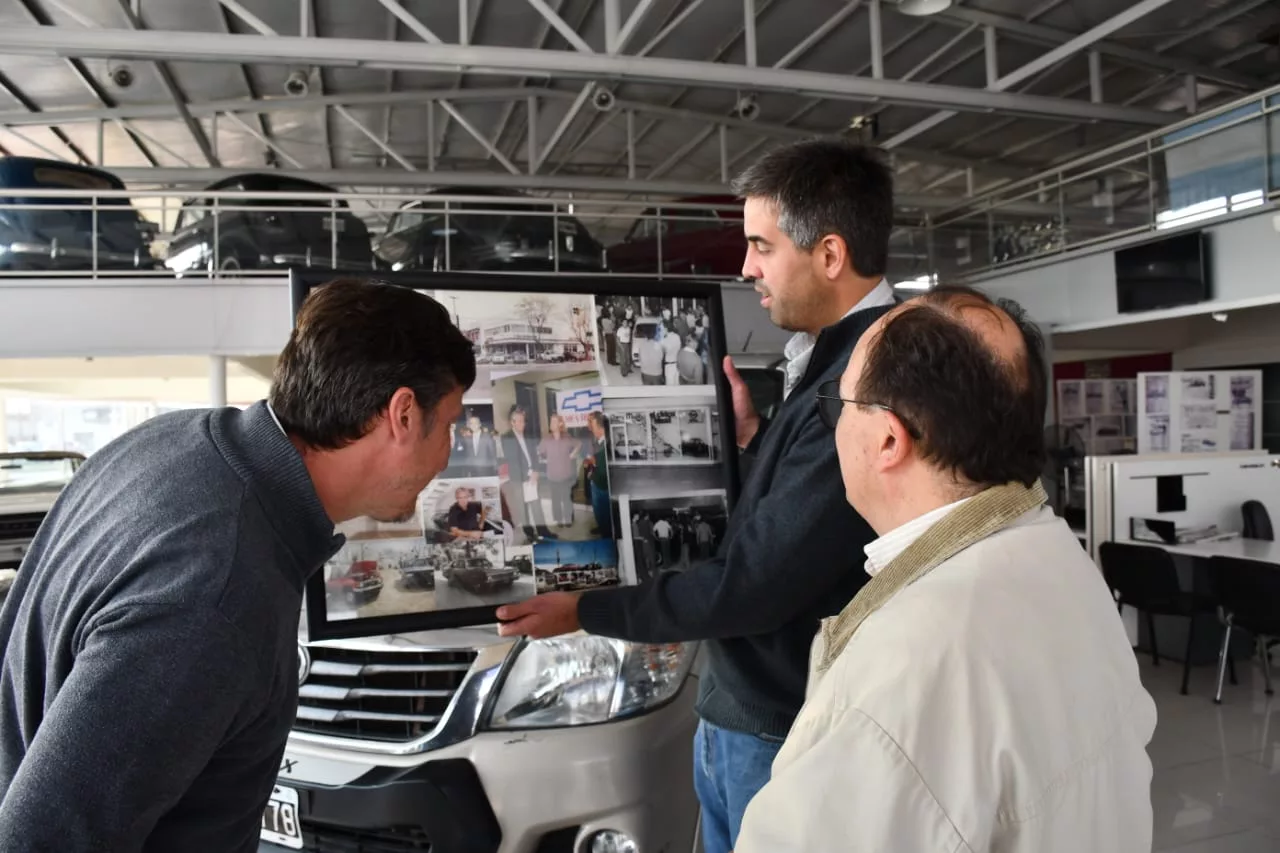 El Intendente José Luis Salomón junto al Secretario de Desarrollo Local Vladimir Wuiovich estuvieron en el Chivo Café y le llevaron un presente a la familia de Francisco Delia en el marco de los 60 año de Francisco Delia Automotores y del 161° aniversario de Saladillo.