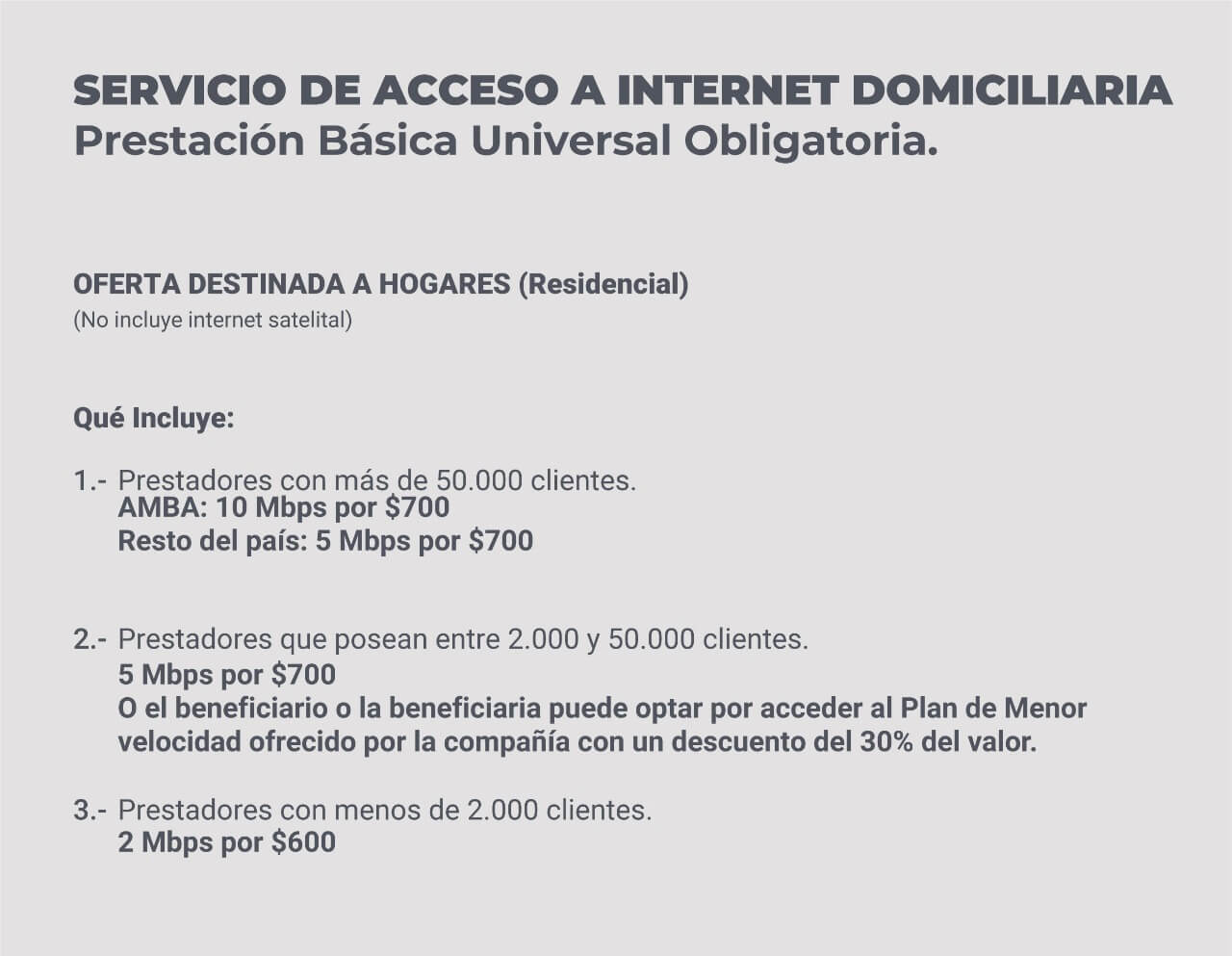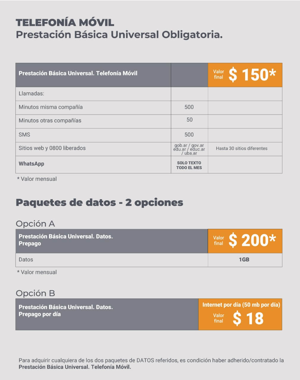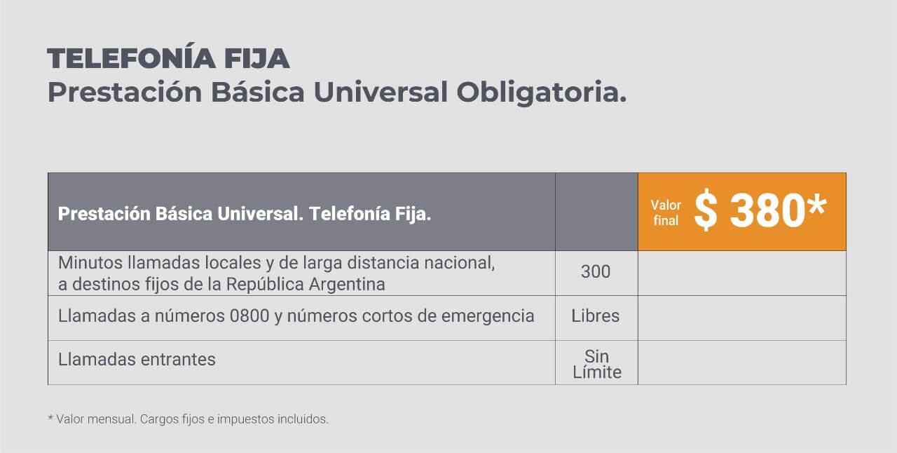 «El Ente Nacional de Comunicaciones (ENACOM), estableció abonos que las empresas prestadoras deberán brindar a los usuarios y usuarias que lo soliciten, siempre y cuando pertenezcan al universo de beneficiarios/as detallados en la página de Prestación Básica Universal y Obligatoria», expresó la cartera a cargo de Santiago Cafiero.