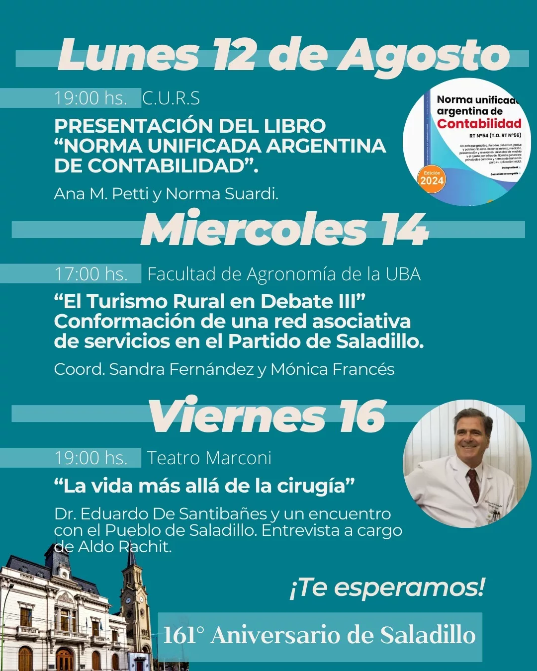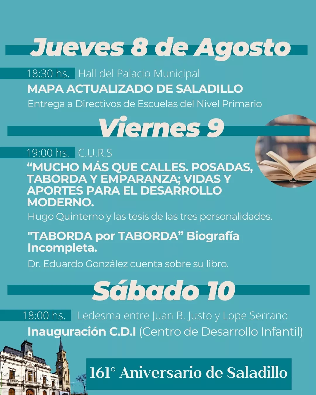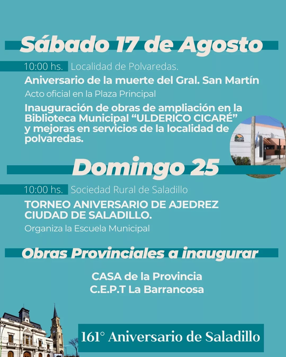 Tenemos una serie de actividades programadas: actos, celebraciones, inauguraciones y mucho más. Agendá estas fechas y participá de los festejos por el 161° Aniversario de Saladillo. 📅✨