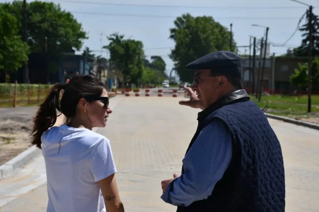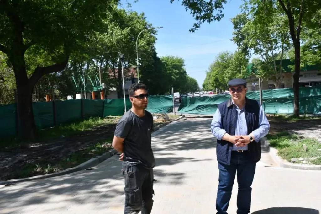 El Intendente Salomón junto con la Directora de Proyectos Arquitecta Albertina Di Iulio observó los avances registrados en la obra de la Avenida Moreno donde se ha colocado recientemente el pavimento articulado.