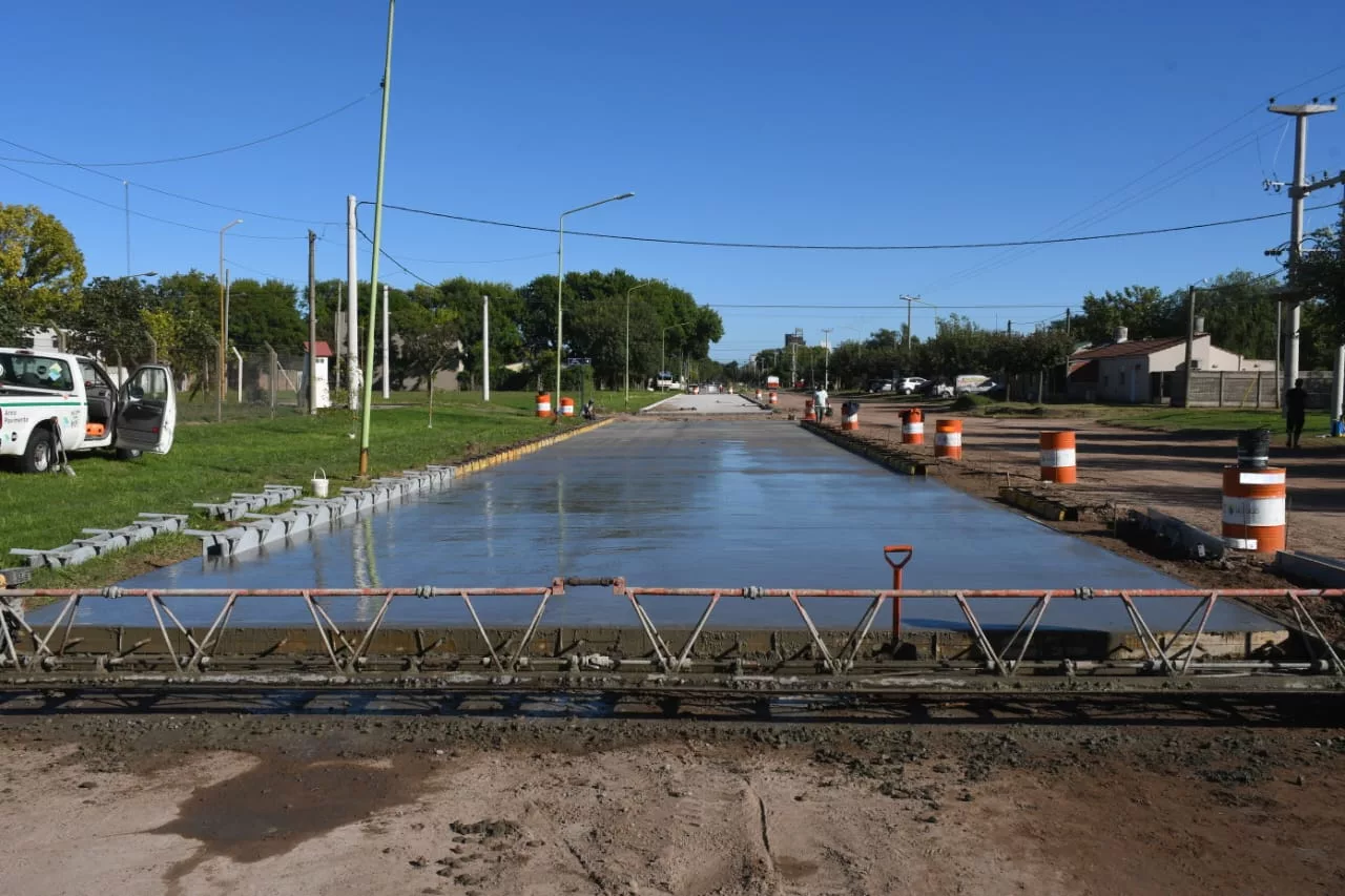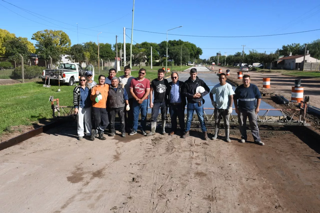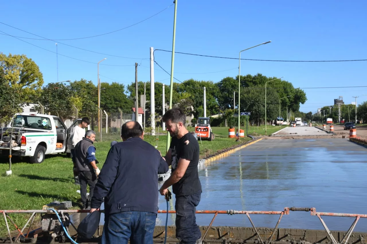 El Intendente Municipal Ing. José Luis Salomón junto con el Secretario de Obras Públicas Ing. Guillermo Candia y la Subsecretaria del área Arq. Anabella Fasano y el encargado del sector de pavimento urbano Darío Invernizzi recorrió la obra de pavimento en la Avenida Ibañez Frocham que avanza a buen ritmo de construcción.