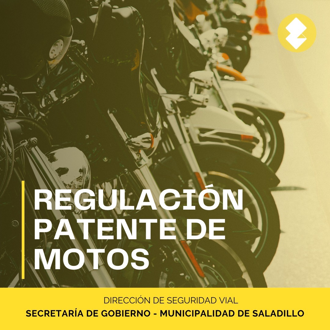 Desde la Dirección de Seguridad Vial de la Municipalidad de Saladillo, se informa a toda persona que posee un motovehículo, deberá efectuar el trámite y correspondiente pago de la patente municipal, la cual es de carácter obligatorio según la Ley de Tránsito 24.449.