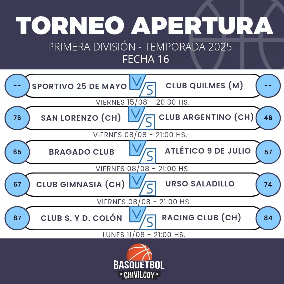 Por la fecha 16 del Torneo de Primera División de Básquet, el elenco mayor del club Jacobo Urso derrotó a Gimnasia de Chivilcoy por 74 a 67, donde se destacaron en el ganador Santiago Mazza con 18 puntos, Guido Mazza y Francisco Marolla, ambos con 14 unidades, con parciales 15/13, 18/18, 12/13 y 22/30.
