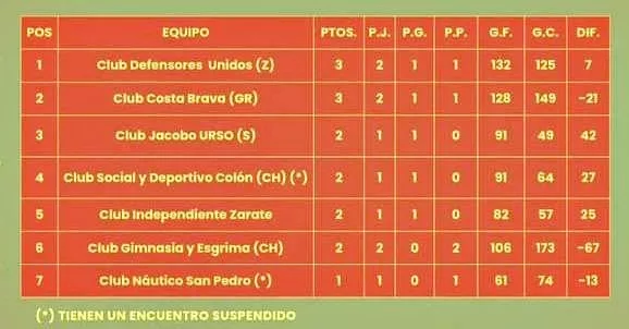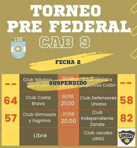 Vale recordar que Urso jugó un solo partido que ganó de local y luego quedó libre, mientras que CADU, jugo dos, uno ganado y uno perdido.