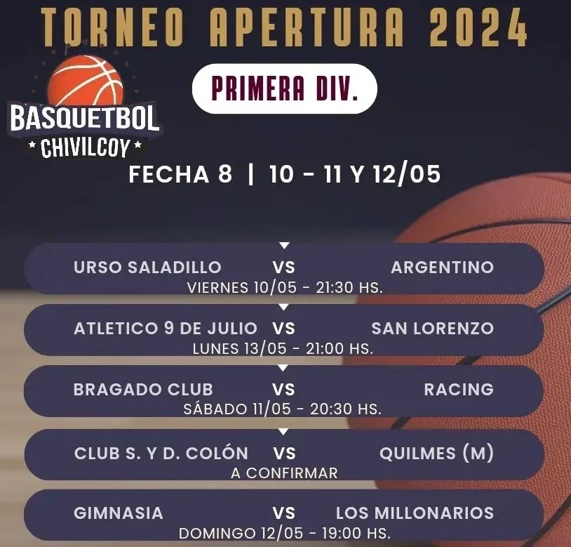 Arrancará hoy la fecha 8 del Torneo Apertura de Primera División de Basquetbol.