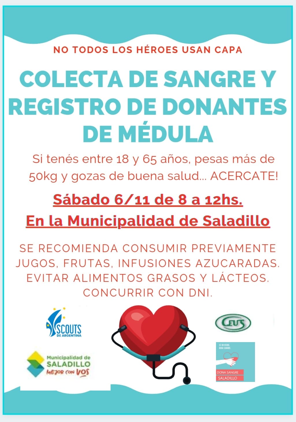 Sábado 6 de noviembre de 8 a 12hs. en la Municipalidad de Saladillo.