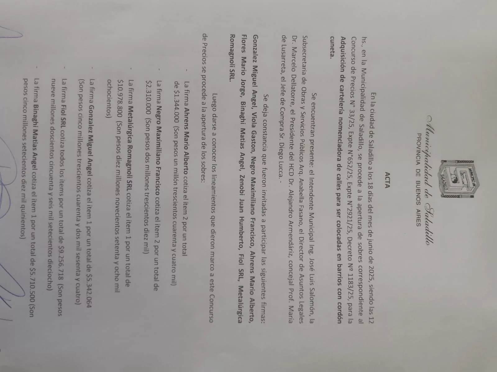 Se realizó la apertura de sobres del Concurso de Precios 33 de este año para la adquisición de cartelería nomenclatura de calles para ser colocada en sectores con cordón cuneta con un presupuesto de 7.770.000 pesos.