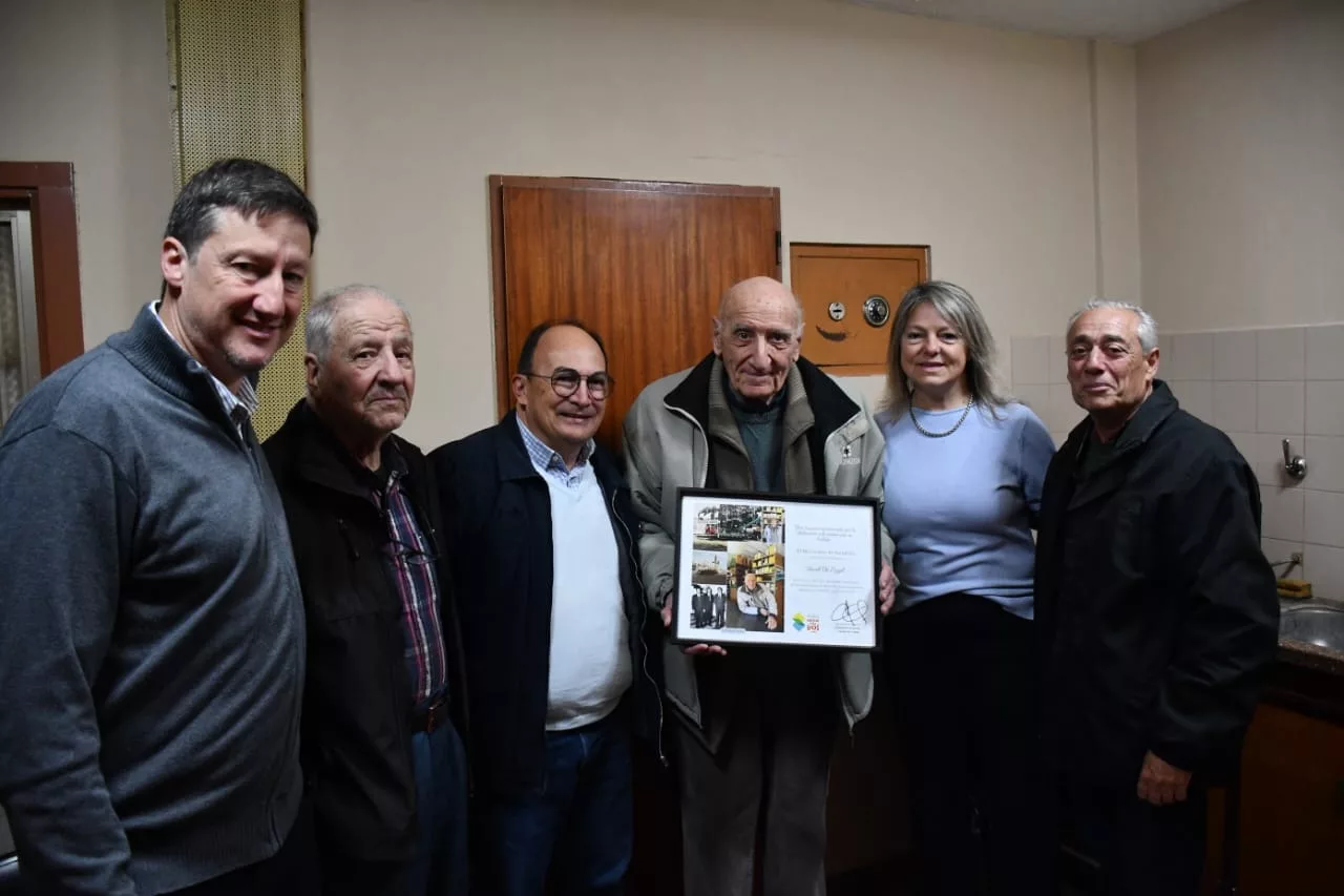 El Intendente José Luis Salomón junto a la Secretaria de Gobierno Viviana Rodríguez, al Secretario de Desarrollo local Vladimir Wuiovich y el Director de Mantenimiento Norberto Larocca visitaron a Davel en su icónico lugar de trabajo donde sigue yendo día tras día.