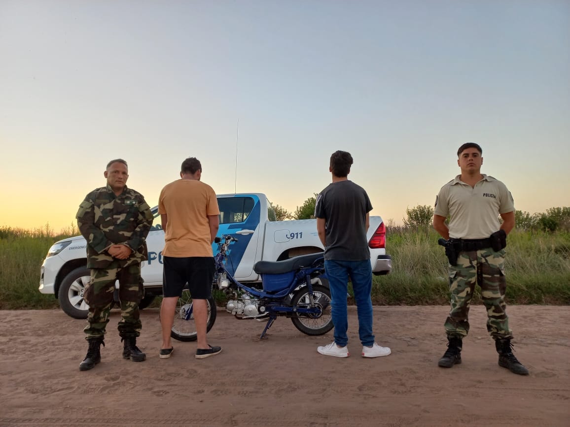 Personal del Comando de Prevención Rural Saladillo, en circunstancia que se encontraban recorriendo el ámbito jurisdiccional competente a la especialidad, en la faz preventiva de delitos y faltas en general, más precisamente en el Cartel IX, perteneciente al Paraje “La Barrancosa” de este medio, se observó el circular de un motovehículo, con dos masculinos a bordo, el cual carecía a simple vista de dominio colocado, como así también de otros elementos de seguridad, necesarios para su uso. Acto seguido y a fin de poder identificar a los ciudadanos antes mencionados, se procedió a intercéptalos, constatándose por consecuente que, ambos eran oriundos de la localidad vecina de General Alvear, quienes al momento de requerida la documentación pertinente, los mismos aludieron carecer de tal. Ante ello y con la mera intención de garantizar la seguridad de los allí presentes, se realiza la requisa preventiva, tanto de la moto como de los sujetos, constatándose en tal accionar que, en el interior del buche de la moto, se encontraba resguardada una bolsa de nylon, conteniendo una sustancia de origen vegetal, la cual luego de ser testeada con los reactivos adecuados, se certifica que misma sustancia resulta ser “marihuana”.
