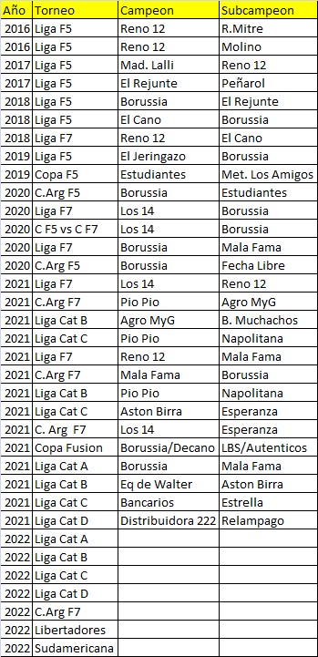 Recuerdo que el primer campeón fue Reno 12, un equipo que terminó siendo campeón muchas veces, y este torneo le toco descender por primera vez. Acá también descienden los “grandes” (dice entre risas).
