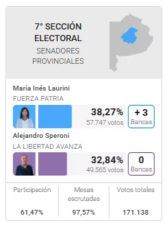 Fuerza Patria se impone con holgura en la primera y en la tercera, las dos secciones electorales con mayor población. También gana en la segunda, en la cuarta, en la séptima y en la octava. El gobernador impuso su estrategia y acertó. El gobierno libertario volvió a sufrir una derrota categórica y hay cuestionamientos al diseño electoral impulsado por los Menem.