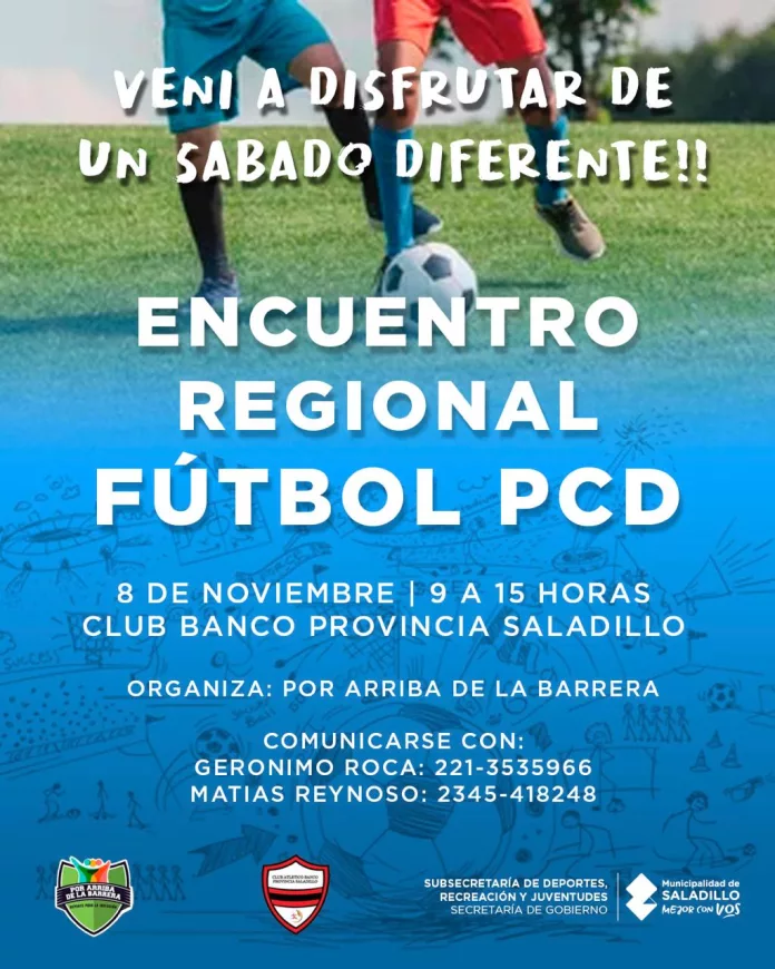 Información General Encuentro Regional Fútbol PCD octubre 29, 2025 - Publicidad - Encuentro Regional Fútbol PCD 8 de noviembre, 9 a 15 hs en Bancarios. Sábado a puro fútbol