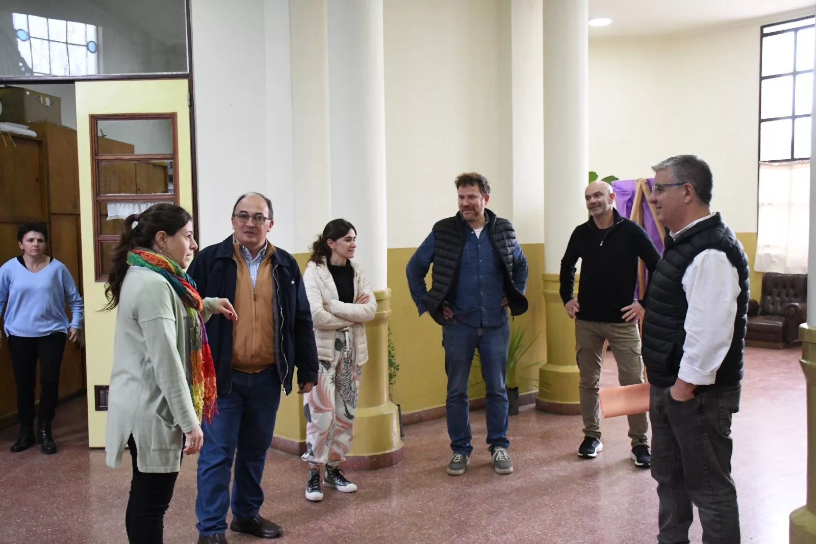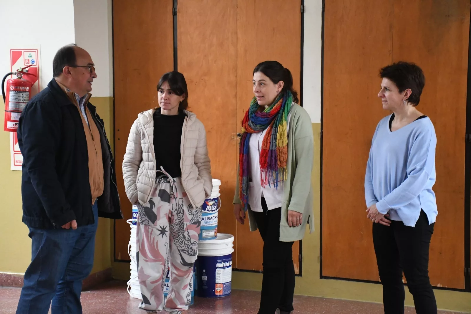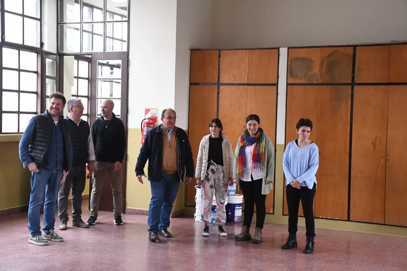 El Intendente Salomón acompañado por el secretario de Hacienda Cdor. Gustavo Ramundo, el subsecretario de Cultura, Educación y Derechos Humanos, Prof. Pablo Censi, y la directora de Proyectos Arq. Albertina Di Iulio, junto con la Directora y miembros de la Asociación Cooperadora, realizaron una recorrida por las instalaciones del edificio de la Escuela N° 1 Domingo Faustino Sarmiento, en donde durante todo este tiempo se realizó la pintura total de todo el interior del mencionado establecimiento, trabajo que contó con el acompañamiento permanente del municipio local.