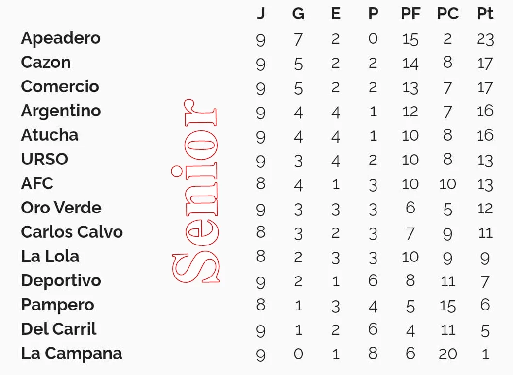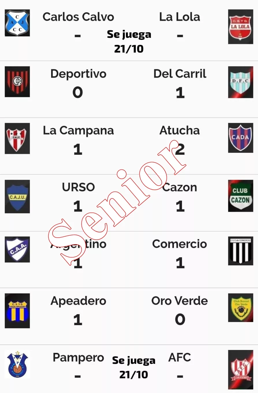 Los partidos de Senior: Pampero vs. Alvear FC y Carlos Calvo vs. La Lola se postergan para el sábado 21/10.