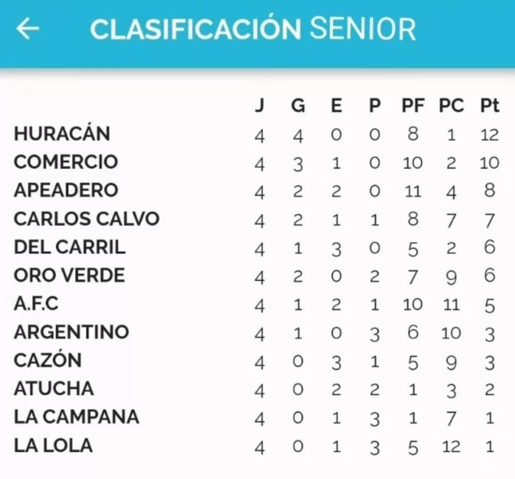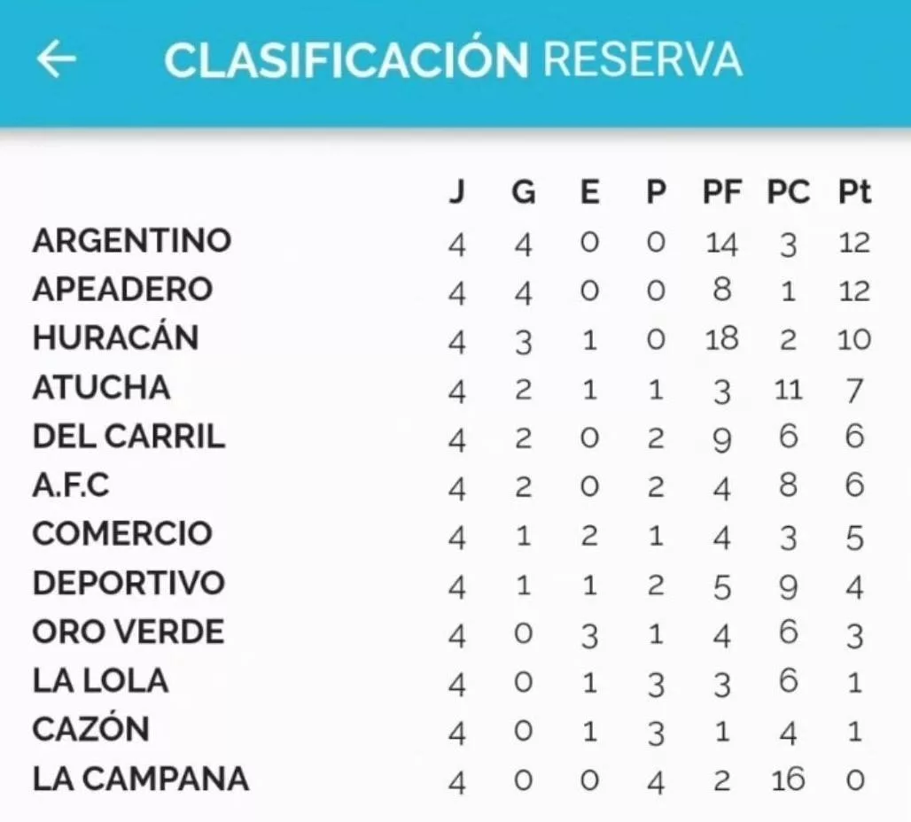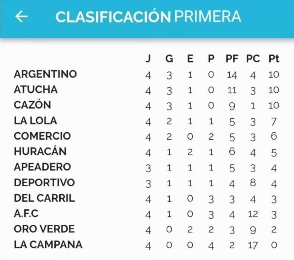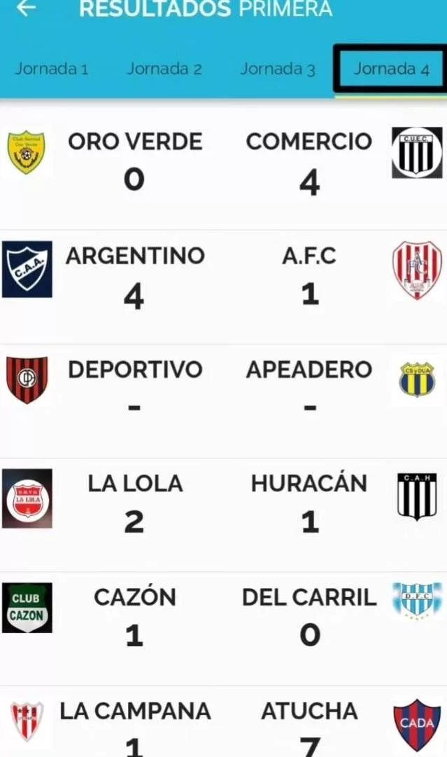 Se disputó este domingo la cuarta fecha del Torneo Apertura de primera división. Argentino goleo a Alvear FC 4 a 1, quedando primero en la tabla por diferencia de goles, entre Atucha y Cazón.