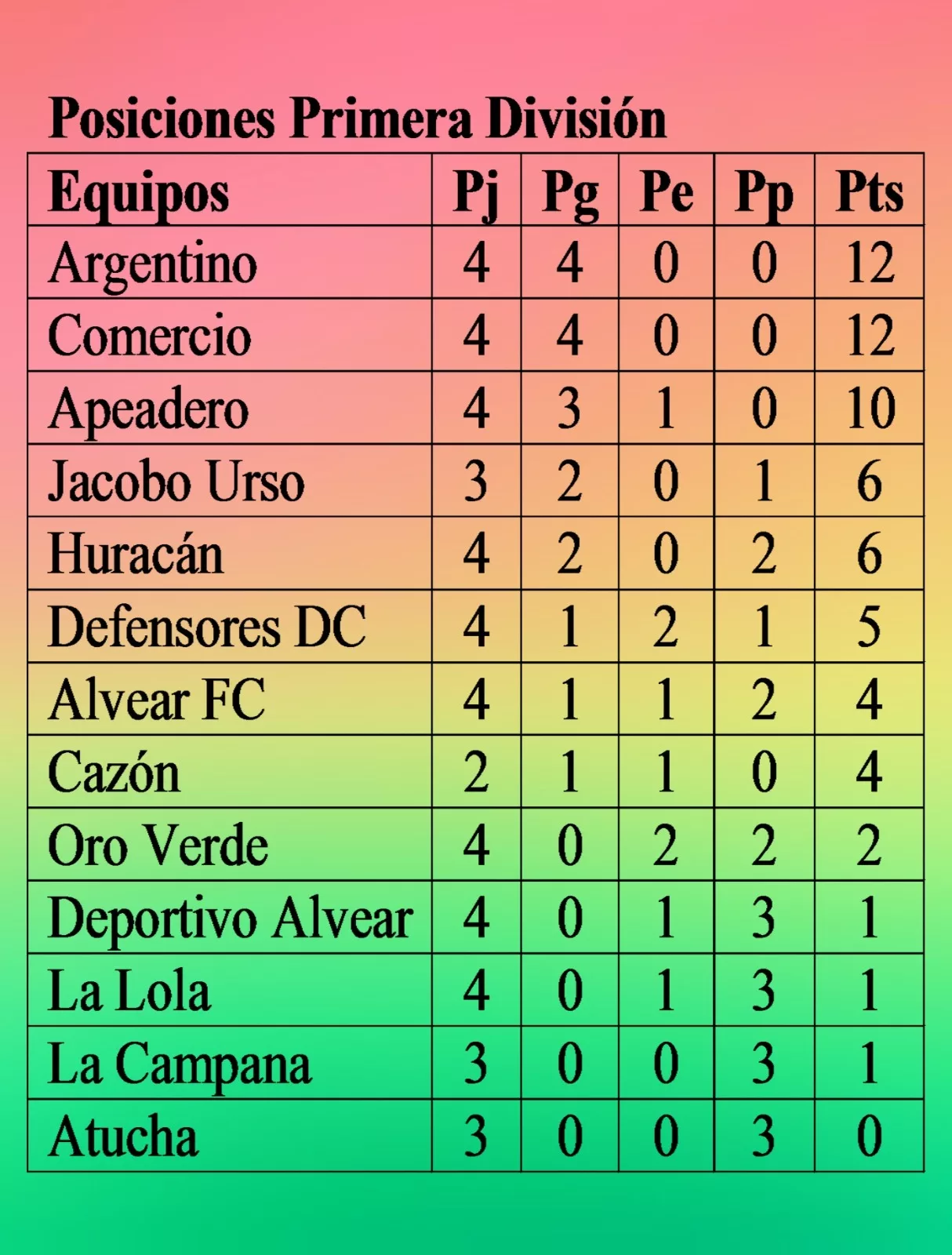 Se desarrolló el domingo la cuarta fecha del Torneo Apertura 2023 de primera división. Argentino y Comercio ganaron y siguen invicto con puntaje ideal, liderando las posiciones en la divisional mayor.