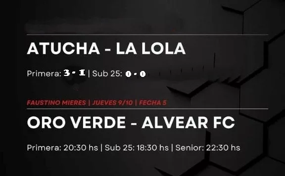 Este jueves en el estadio Faustino Mierez, Oro Verde y Alvear FC recuperarán la 5ta fecha del Clausura. A las 18:30, Reserva; a la 20:30, Primera; y a las 22:30, Senior