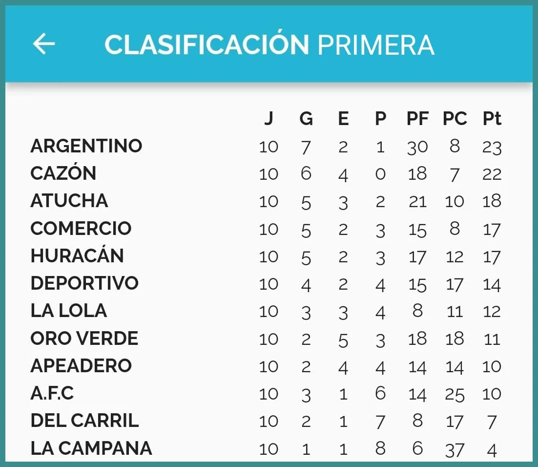 Con el triunfo de Cazón sobre Argentino, como el resultado más destacado de la fecha, se desarrolló este domingo la décima jornada del Torneo Apertura de División.
