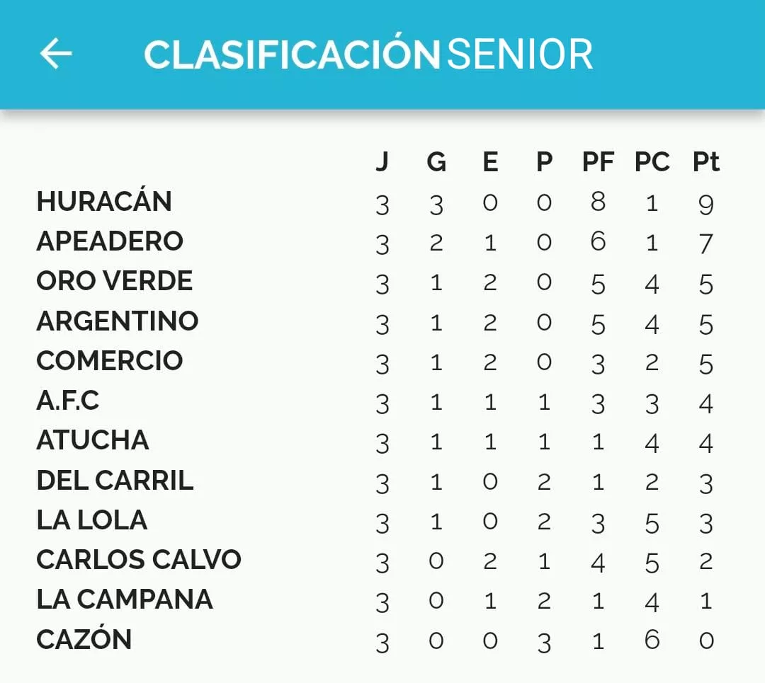 Senior: 12:00 hs. (Apeadero vs. Carlos Calvo)