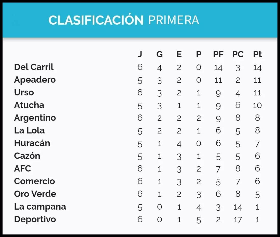 Desarrollada la sexta fecha del torneo Clausura de primera división, Unión Apeadero fue el equipo que más redito saco. Le ganó a Jacobo Urso y se acercó al puntero de la tabla, Defensores de Del Carril. Este último igualó con Huracán, teniendo un partido más que el equipo del Barrio Obrero.