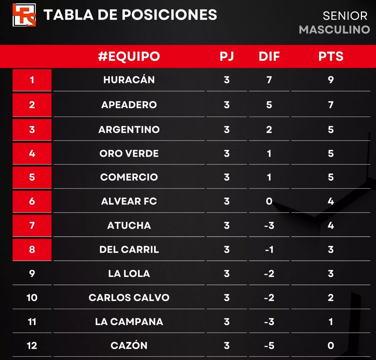 Senior: 12:00 hs. (Apeadero vs. Carlos Calvo)