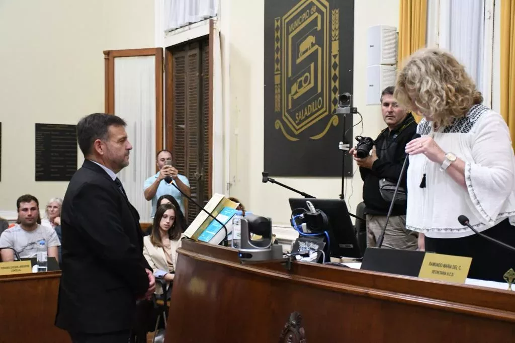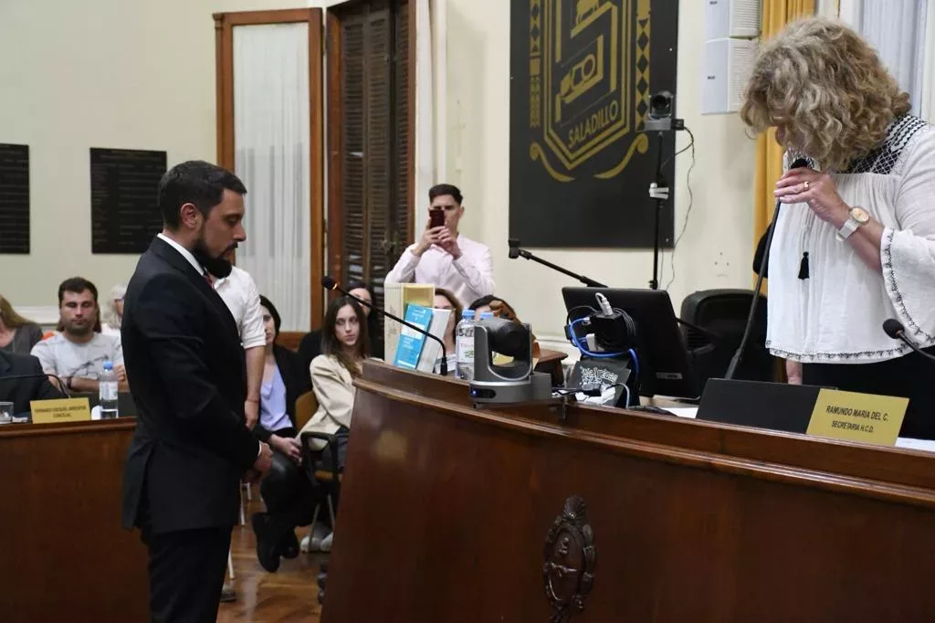 El Sábado pasado a partir de las 20 horas en el recinto Héroes de Malvinas realizaron el juramento correspondiente las y los concejales elegidos el pasado 22 de Octubre por el voto popular para el período 2023-2027 en nuestra ciudad. Allí estuvo presente el Intendente Salomón.