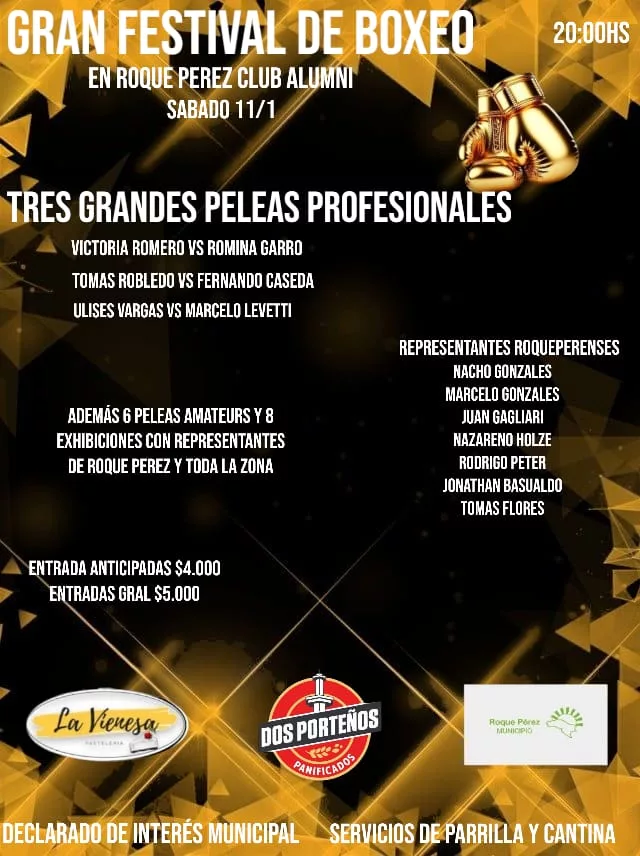El organizador general, Pablo Battista comentó que esperan «a todos los amantes del boxeo de la zona, dado que la Municipalidad de Roque Pérez ha generado todas las condiciones para que sea una fiesta regional, y por lo tanto un espectáculo para los aficionados a este deporte que ha sido declarado de Interés Municipal».