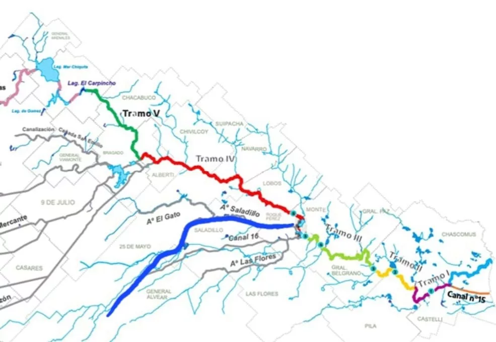 Aunque falta concluir un tramo clave del dragado del Salado, que está paralizado, y también concretarlo desde Bragado hasta Junín, Larrañaga enfatizó que «simultáneamente, cuando están dadas las posibilidades técnicas, es imprescindible avanzar con las obras complementarias, porque sino este proyecto va a demorar 100 años».