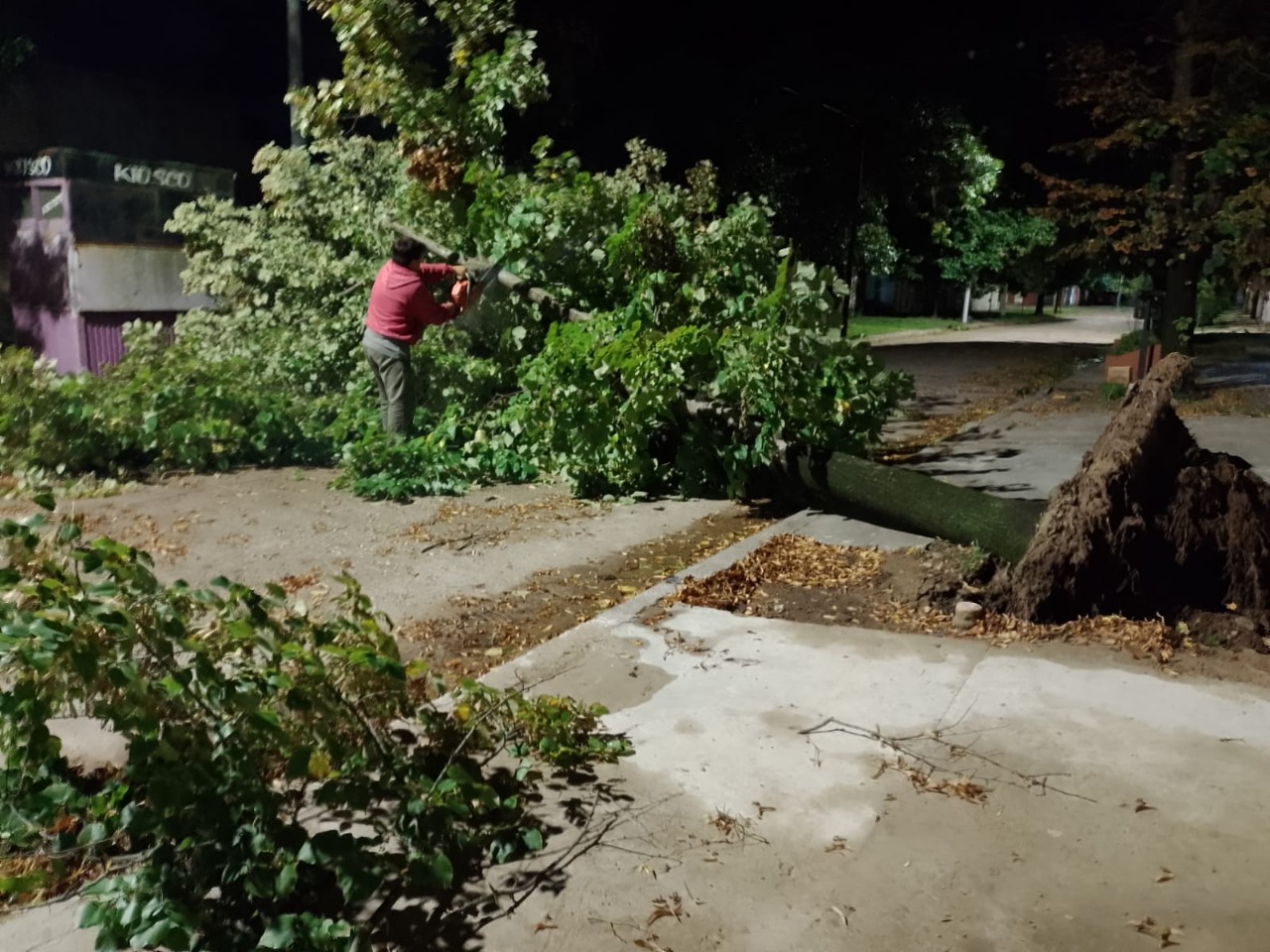 Se realizó un intenso trabajo mancomunado entre Defensa Civil municipal, Bomberos Voluntarios de nuestra ciudad, y personal Policial para proceder a la liberación al tránsito y limpieza de la zona de Ruta Nacional 205 y Provincial 51. También se reportó una gran cantidad de ramas caídas de menor porte, como así también un par de árboles que ya están siendo retirados de la vía pública. En todas estas actividades hubo personal de la Secretaría de Obras y Servicios Públicos, incluyendo Dirección de Servicios Urbanos, Dirección de red Vial, Arbolado Urbano, Dirección de Tránsito, Defensa Civil, Bomberos Voluntarios, Policía de la dependencia local cuadrillas de la Cooperativa Eléctrica que debieron realizar importantes trabajos, tanto en nuestra ciudad como en parajes y localidades del interior.