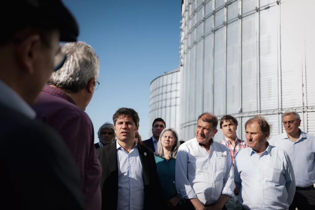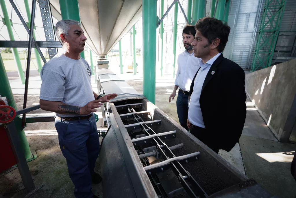 Durante la jornada, Kicillof recorrió la Cooperativa Agrícola Ganadera local que, con tres sucursales y más de 60 empleados, se dedica al acopio, acondicionamiento y comercialización de granos. En 2023, la firma recibió financiamiento del Gobierno provincial para la modernización de la planta de silos y para la compra e instalación de equipamiento.