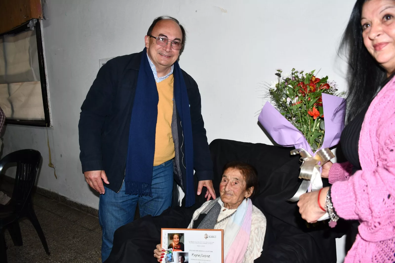 El intendente Salomón concurrió a saludar a la vecina María López que en el pasado 29 de junio arribó a los 100 años de edad, haciéndole entrega de un presente en representación de todo el pueblo de Saladillo.