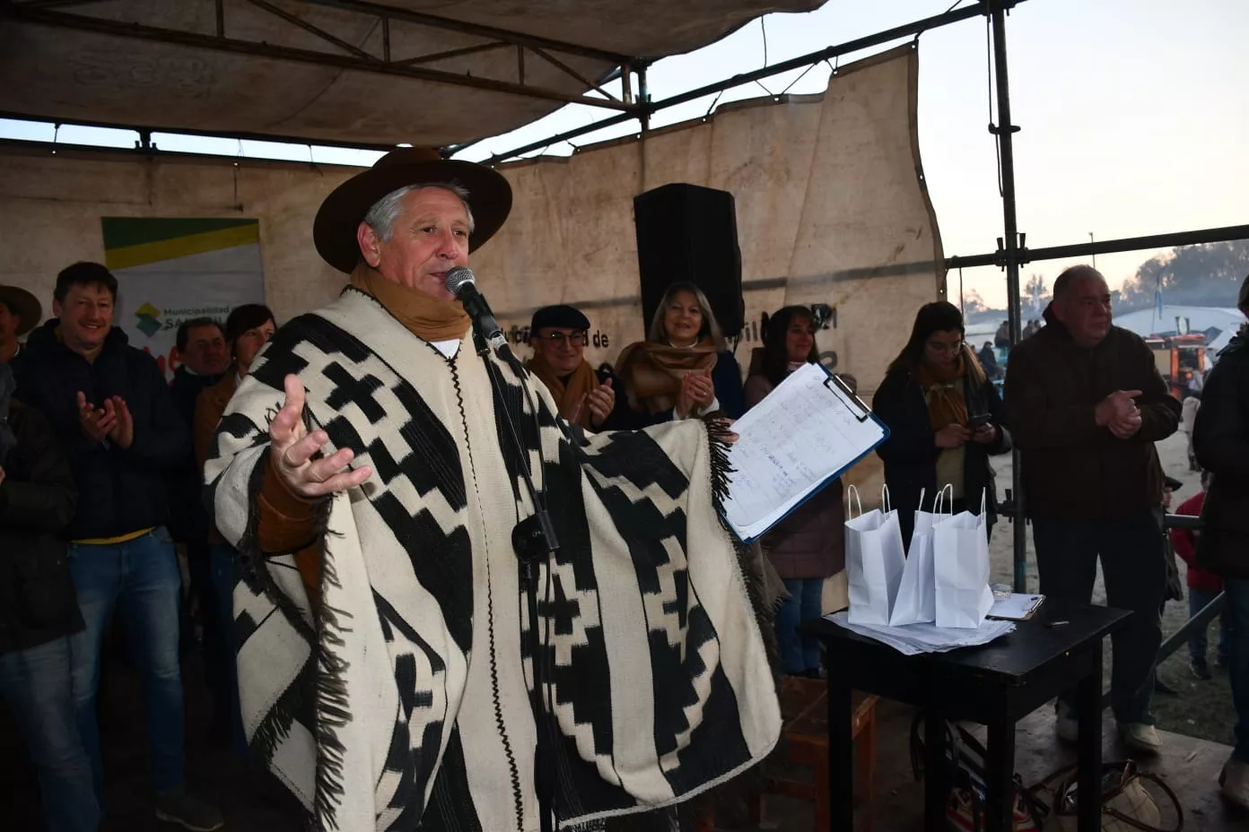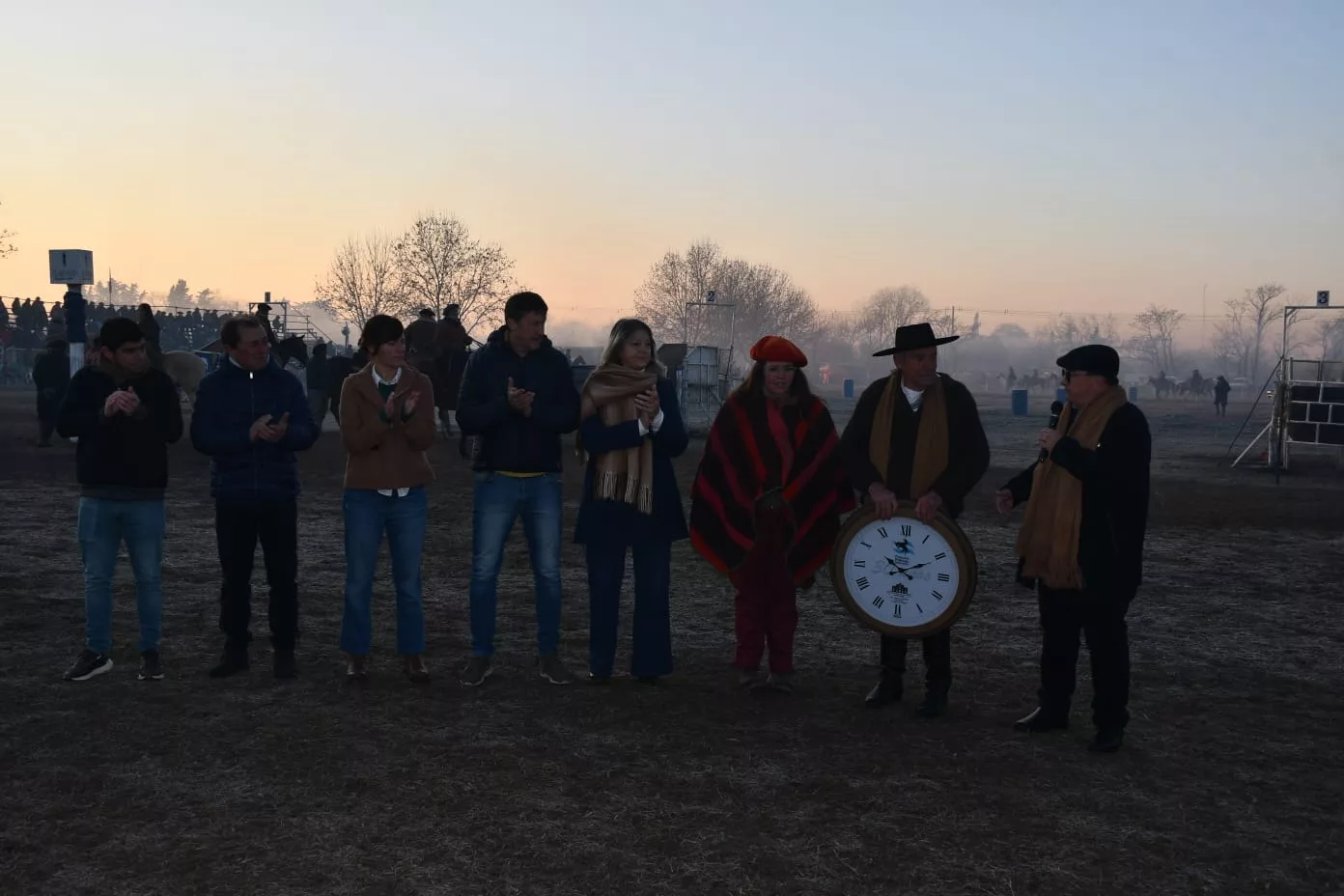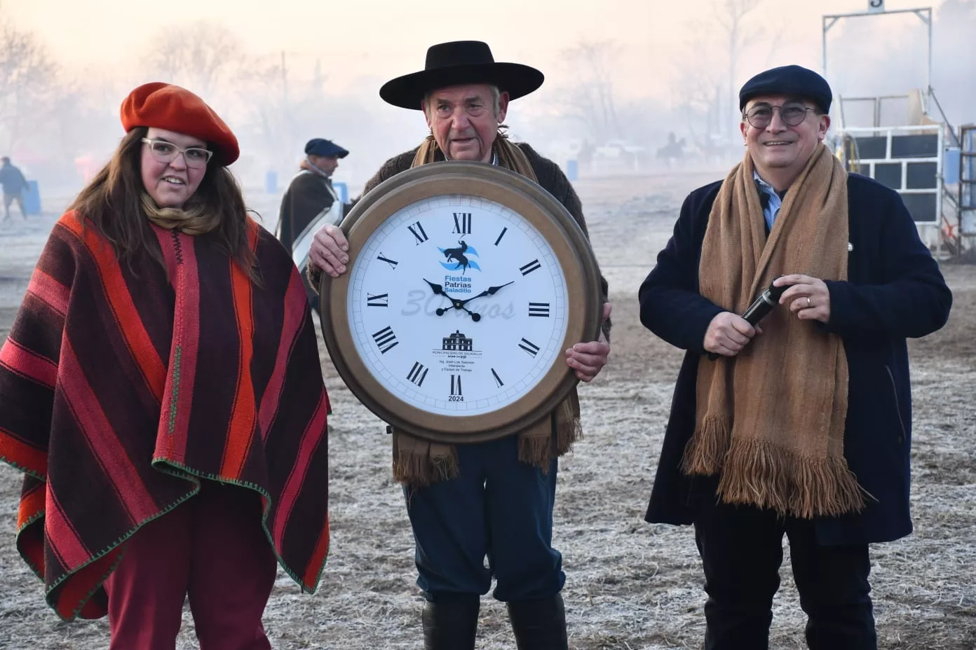 Luego del desfile de los jinetes y caballos se realizó el izamiento de la bandera y luego se entonaron las estrofas del Himno. Posteriormente estuvo la palabra del Presidente de la Sociedad Rural Gonzalo Villegas y del Intendente Municipal Ing. José Luis Salomón quién destacó estas 3 décadas de llevar adelante este evento en invierno e hizo entrega de un presente en representación de toda la comunidad. Nahuel Pellejero leyó las rimas pensadas para esta ocasión, hubo un reconocimiento a toda la familia Silveyra y la entrega del Decreto declarando de interés municipal este acontecimiento.