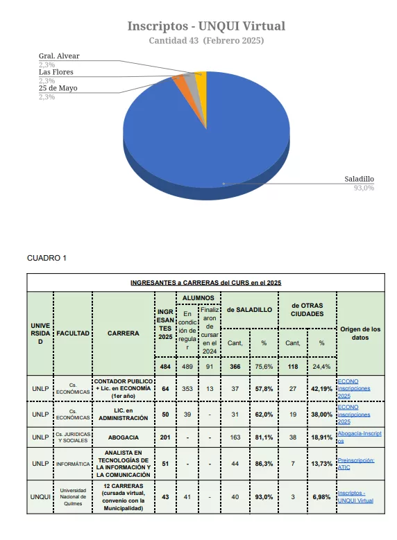 INFORMACIÓN DEL CENTRO UNIVERSITARIO REGIONAL SALADILLO || Más de 1000 alumnos están cursando actualmente las diferentes ofertas educativas del CURS