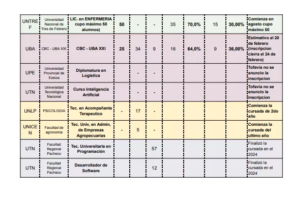 de 583 estudiantes. Para este 2025, luego de pensar y evaluar la oferta educativa -donde se consultó a diversos y variados actores- se realizaron convenios con diversas Universidades, y Facultades, para - ampliar la oferta educativa.