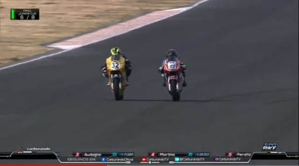 Faltando tres vueltas para el final de la carrera, Valentín Valor encontró un lugar para lograr el sobrepaso y consiguió superar al puntero dejándolo como escolta. Valor sostuvo esta posición apenas un puñado de curvas más adelante y Bautista pudo recuperar el liderazgo sin marcar una diferencia.