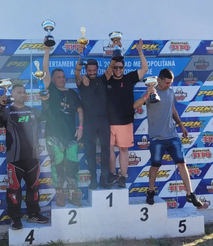 Santiago obtuvo la corona 2023 en la categoría Graduados hasta 200 cc, con una Zanella 125. De regreso a Saladillo, fue recibido en la ruta por familiares y amigos.