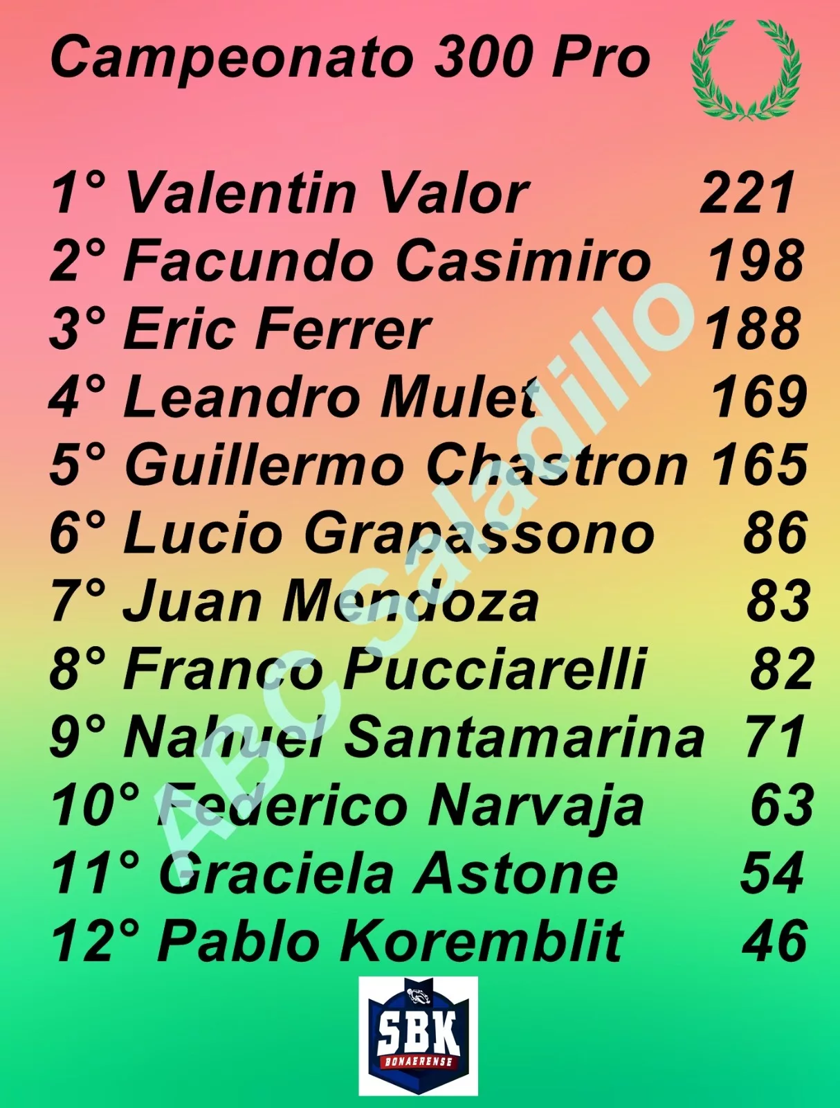 Desarrolladas seis fechas del Superbike Bonaerense, el piloto de Saladillo, Valentín Valor, lidera las posiciones del campeonato 2023 con 221 unidades. El último domingo finalizó segundo en Roque Pérez, donde pudo cosechar importantes puntos para la tabla.