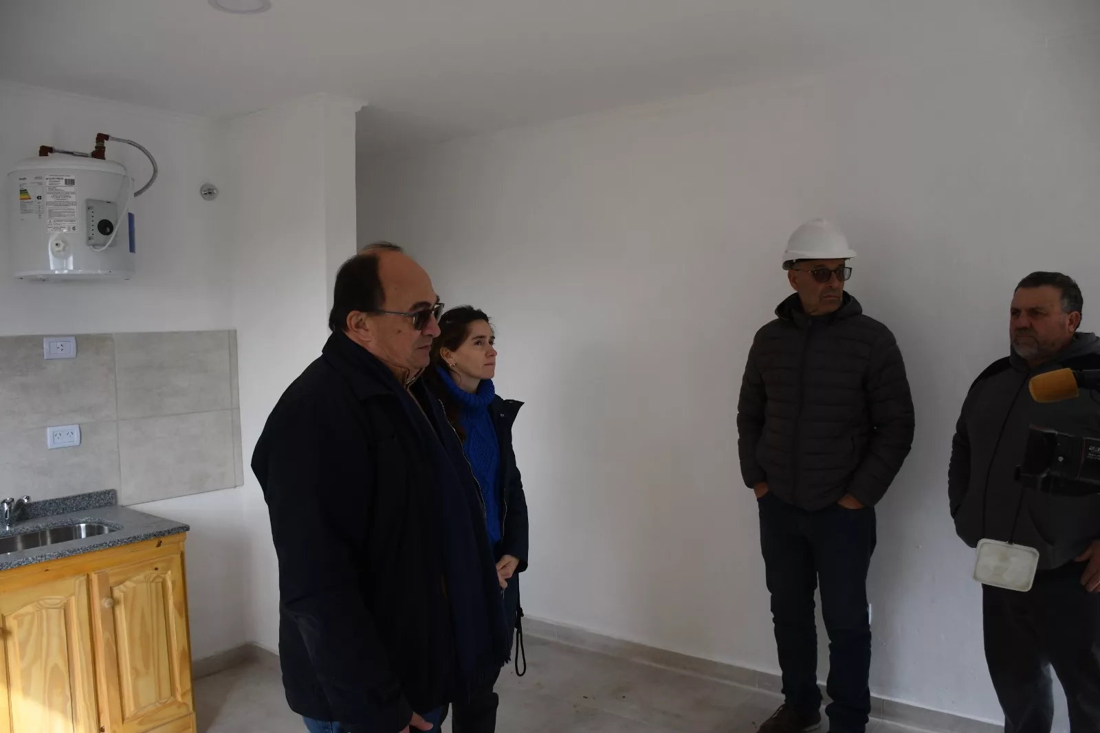 El Intendente Salomón durante la recorrida realizada en la localidad de Cazón observó el avance registrado en la construcción de cuatro viviendas enmarcadas dentro de la Ordenanza de Plusvalía.