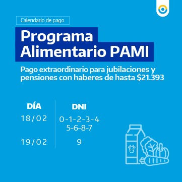 En el marco de la emergencia sanitaria, el Instituto Nacional de Servicios Sociales para Jubilados y Pensionados, a través del Programa Alimentario PAMI, anunció el desembolso por cuarta vez de un pago extraordinario en reemplazo del bolsón de alimentos correspondiente a los meses de enero, febrero y marzo.