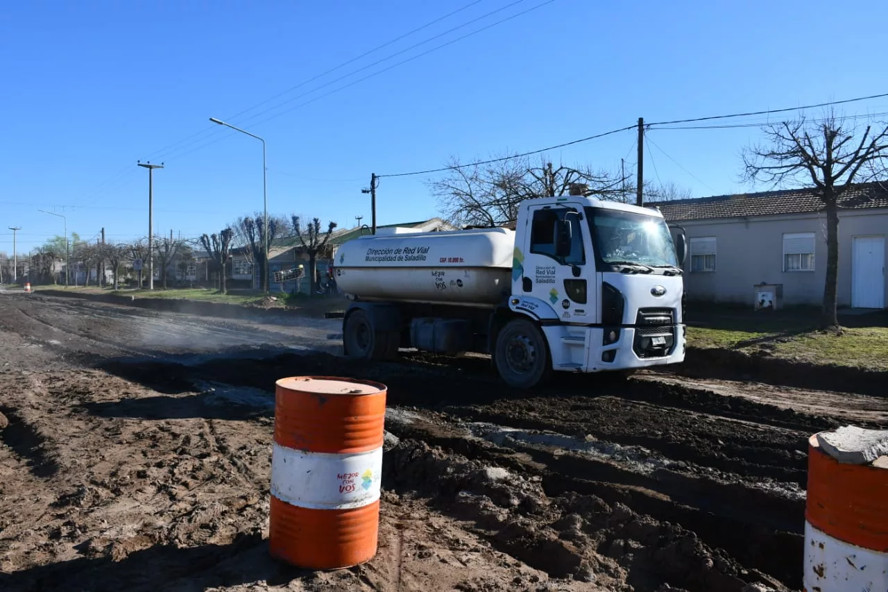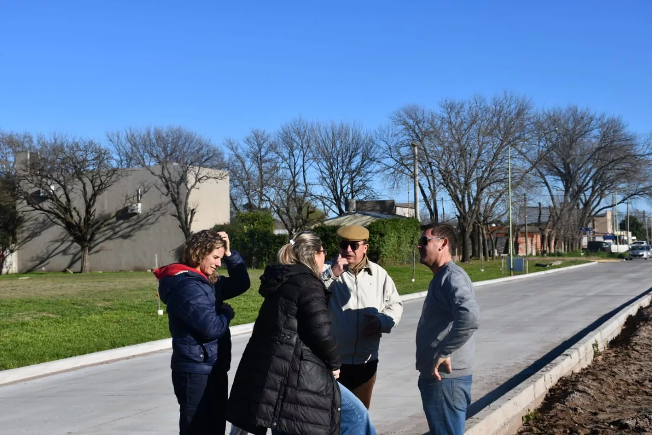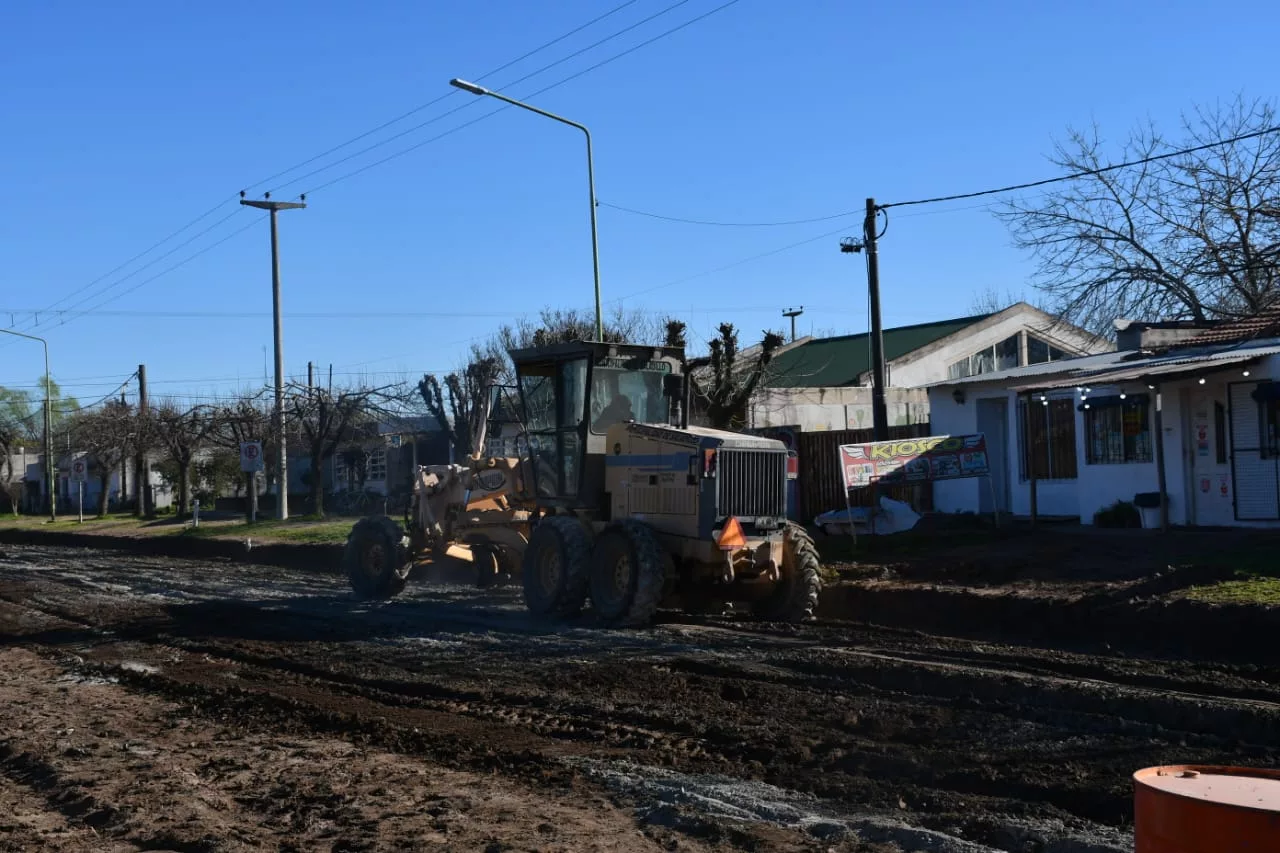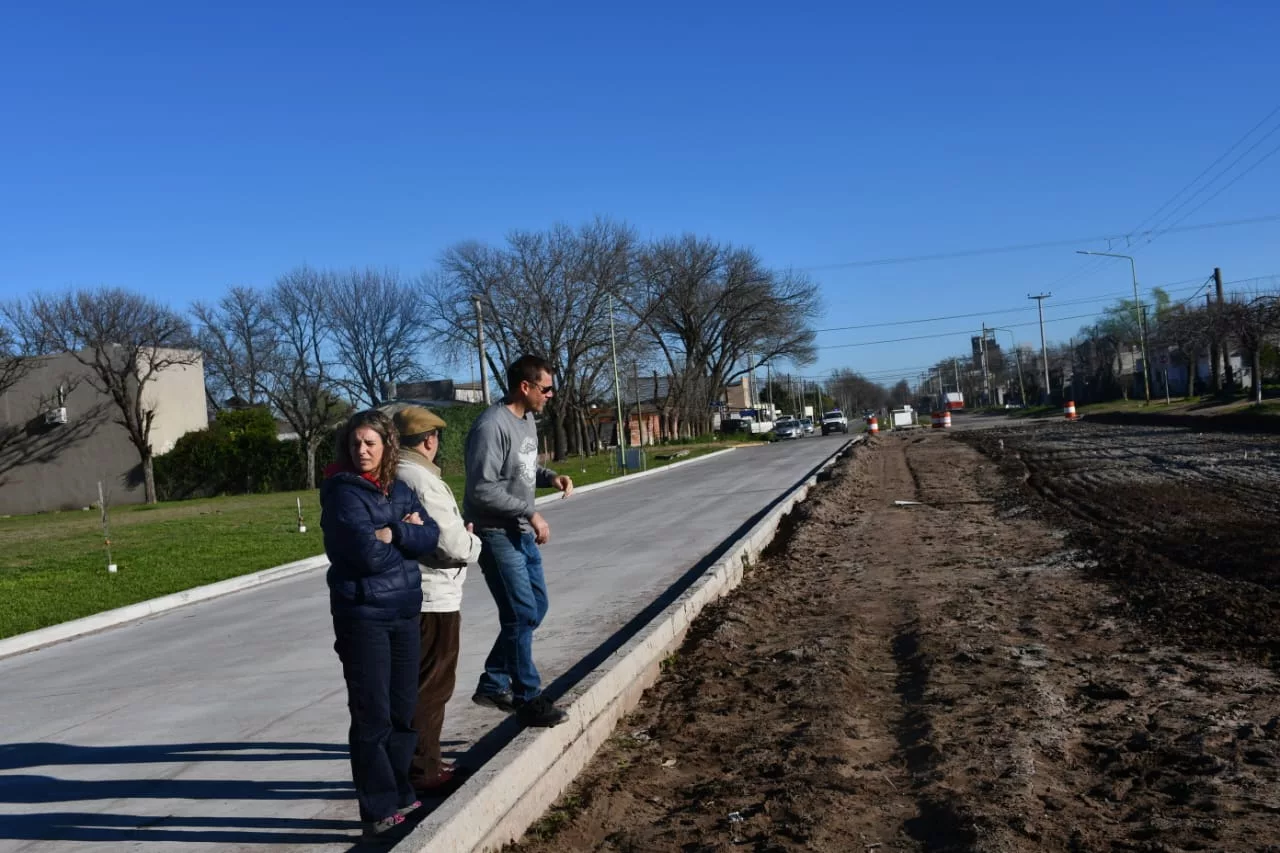 El Intendente Municipal Ing. José Luis Salomón junto con la Subsecretaria de Obras y Servicios Públicos Arq. Anabella Fasano y el encargado del área de Pavimento Urbano Darío Invernizzi observó los trabajos de elaboración del suelo cemento, etapa previa a la construcción del pavimento en las dos cuadras restantes de la Avenida Ibañez Frocham en el tramo entre las calles Yrigoyen y Avenida Bozán.