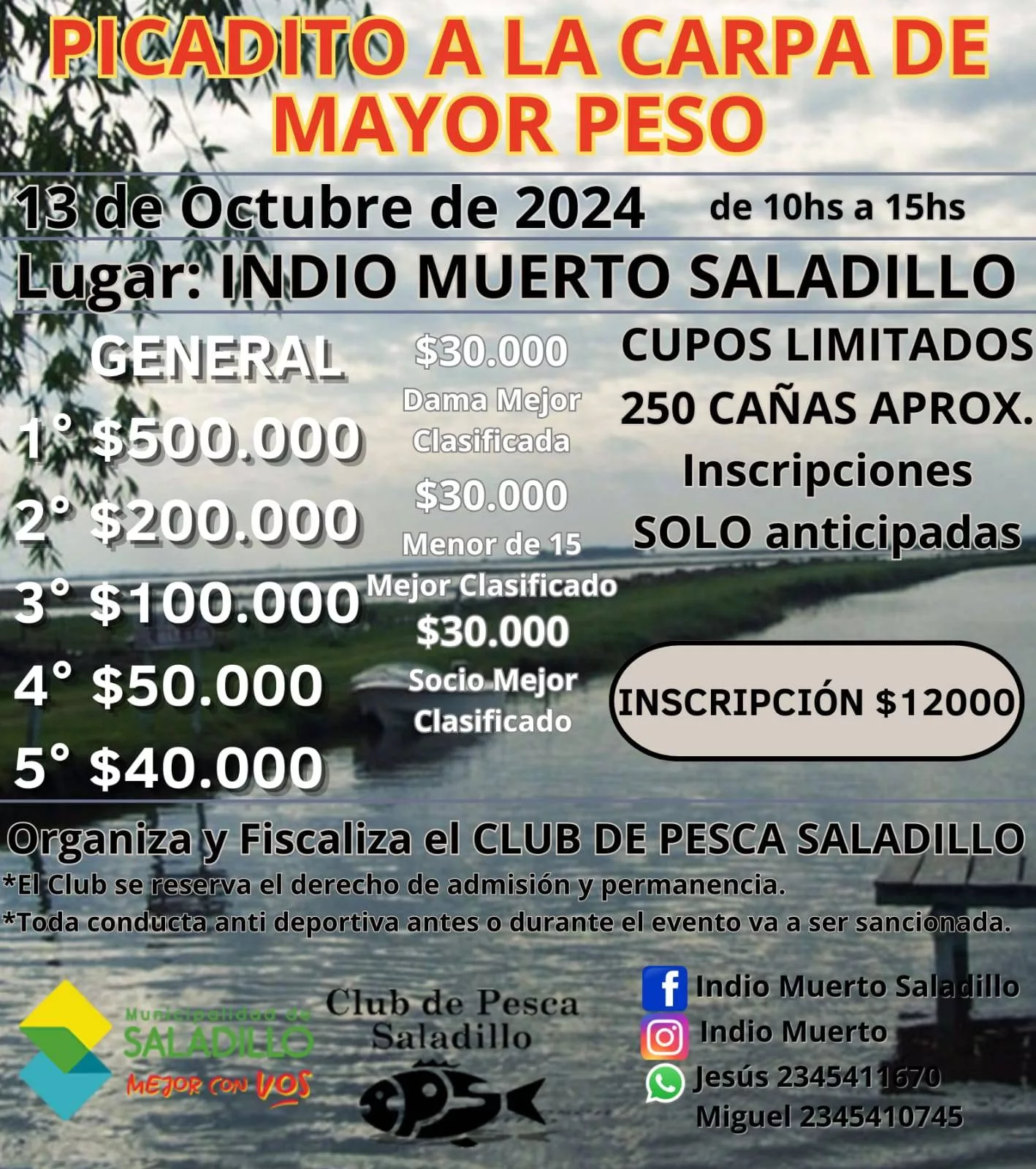 Organiza y Fiscaliza Club de Pesca Saladillo.