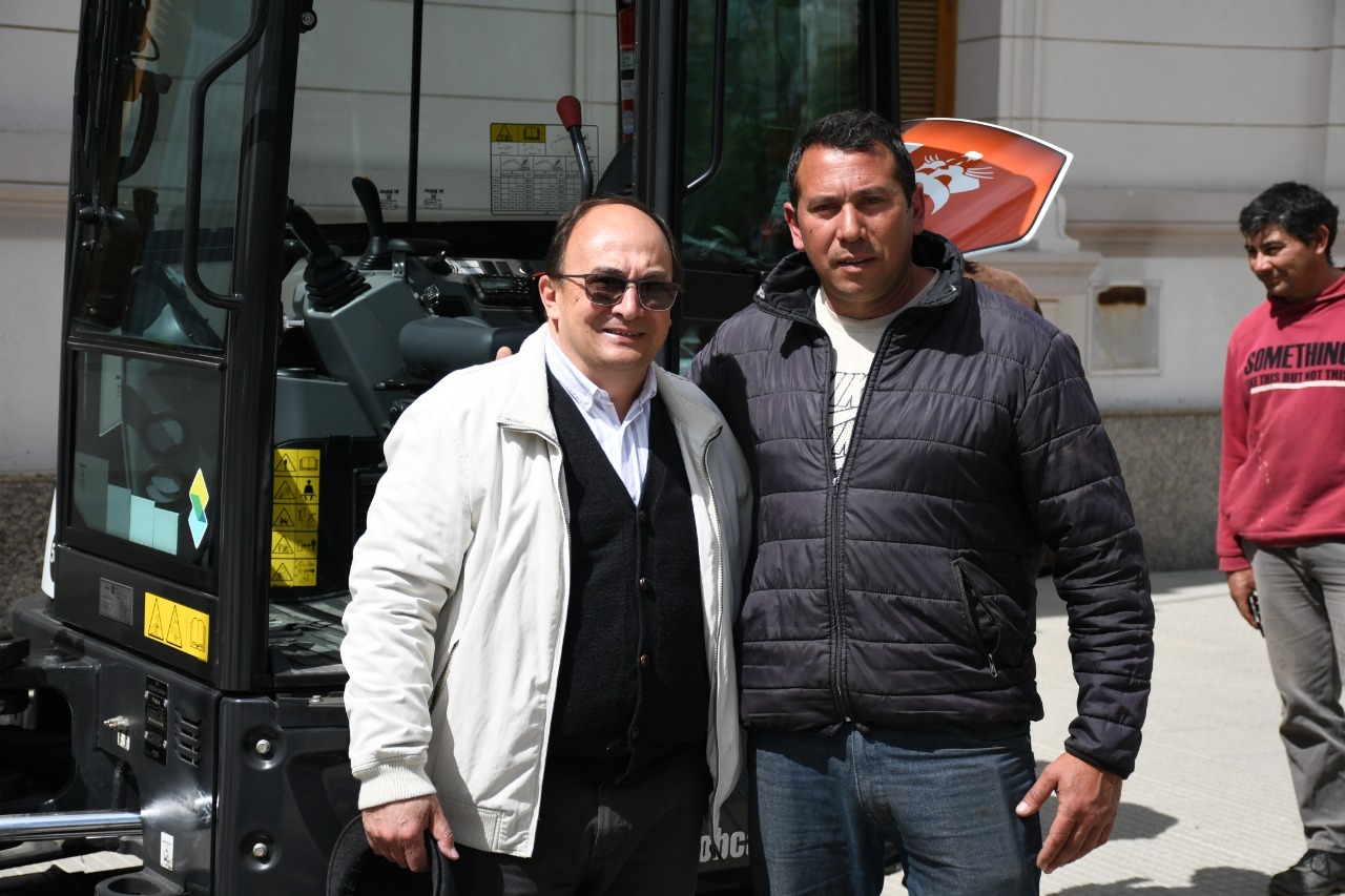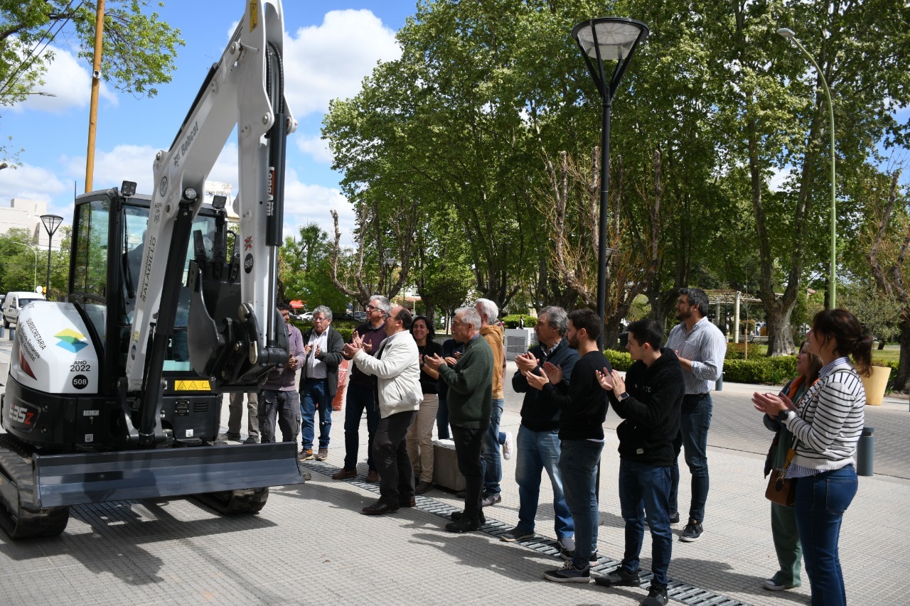 Frente al municipio el Intendente Salomón e integrantes del equipo de gobierno local, presentaron la nueva mini retroexcavadora recientemente adquirida para ser utilizada por la Subsecretaría de Servicios Sanitarios y Gestión Ambiental.